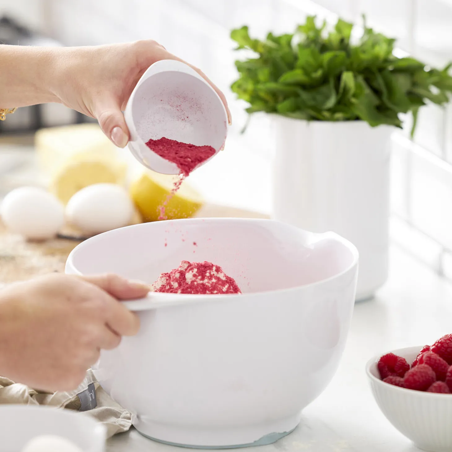 Margrethe-skålen er den klassiske røreskål med det gode greb, den praktiske hældetud og den skridsikre bundring. Den nye version af Margrethe-skålen er fremstillet af plastmaterialet durostima®. Skålen er nu endnu stærkere og mere brudsikker, og med det nye materiale kan den også tåle mikroovn og fryser. Margrethe-skålen er velegnet til såvel tilberedning som servering, og tilkøbes der låg, er røreskålen omdannet til en praktisk opbevaringsskål. 5 års garanti.