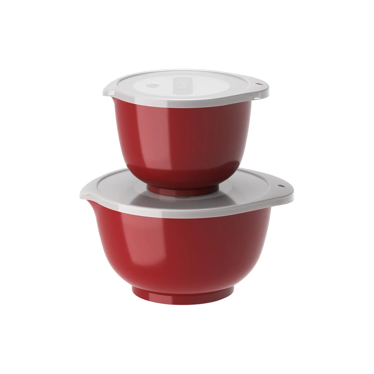 Margrethe røreskålesæt fra Rosti i 2 af de mest anvendte størrelser. Sættet indeholder 1,5 + 3 liter Margrethe-skåle med tilhørende låg.Margrethe-skålen er den klassiske røreskål med det gode greb, den praktiske hældetud og den skridsikre bundring. Den nye version af Margrethe-skålen er fremstillet af plastmaterialet durostima®. Skålen er nu endnu stærkere og mere brudsikker, og med det nye materiale kan den også tåle mikroovn og fryser. Margrethe-skålen er velegnet til såvel tilberedning som servering, og tilkøbes der låg, er røreskålen omdannet til en praktisk opbevaringsskål. 5 års garanti.