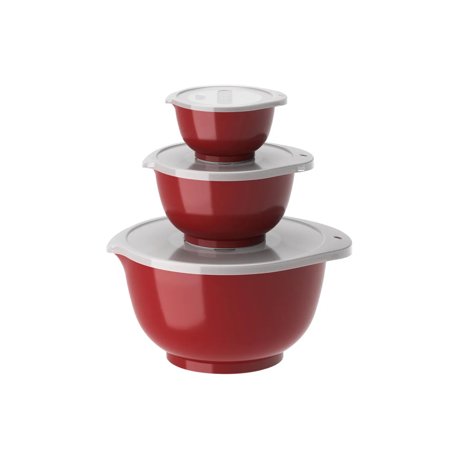 Margrethe røreskålesæt fra Rosti i 3 af de mest anvendte størrelser. Sættet indeholder 0,25 + 0,75 + 3 liter Margrethe-skåle med tilhørende låg.Margrethe-skålen er den klassiske røreskål med det gode greb, den praktiske hældetud og den skridsikre bundring. Den nye version af Margrethe-skålen er fremstillet af plastmaterialet durostima®. Skålen er nu endnu stærkere og mere brudsikker, og med det nye materiale kan den også tåle mikroovn og fryser. Margrethe-skålen er velegnet til såvel tilberedning som servering, og tilkøbes der låg, er røreskålen omdannet til en praktisk opbevaringsskål. 5 års garanti.