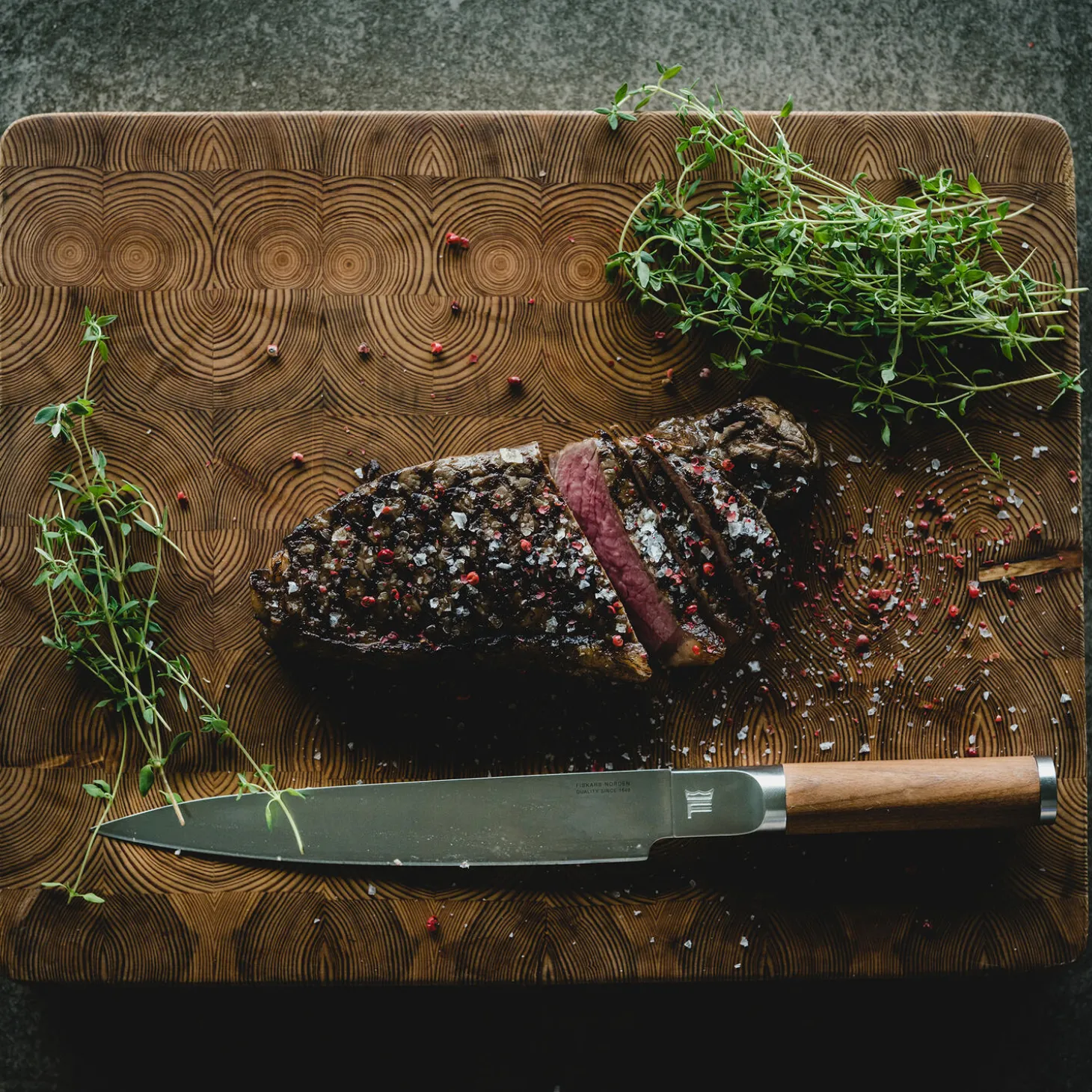 Fiskars Norden-knivene er lavet af premium materialer. Norden forskæreknivens lige, lange knivblad er perfekt til forkæring af steg og andre stykker kød. Knivbladet er lavet af tysk karbonstål af højeste kvalitet, hvilket sikrer en overlegen funktionalitet og langvarig skarphed. Derudover er knivbladet slebet med den optimale 26˚ vinkel, som yderligere understøtter knivbladets fortræffelige skarphed. Håndtaget er fremstillet af varmebehandlet birketræ, hvilket gør kniven meget behagelig i hånden og naturligt smuk. Knivbladet har en hårdhed på HRC 56. Vi anbefaler at vaske dine knive i hånden. Det varmebehandlede håndtag I bøgetræ på Fiskars Norden knivene giver et æstetisk Nordisk udtryk. De naturlige variationer i farve og tone tilfører knivene autensitet og stil. Produceret i Finland. Unikt, fra naturens side.