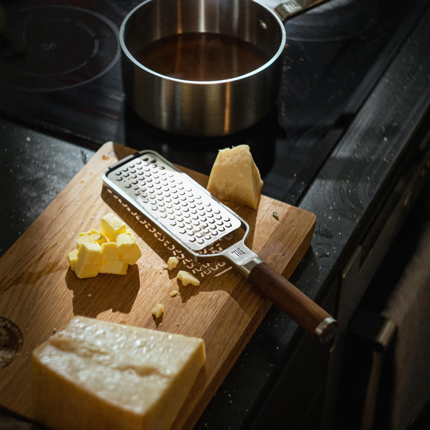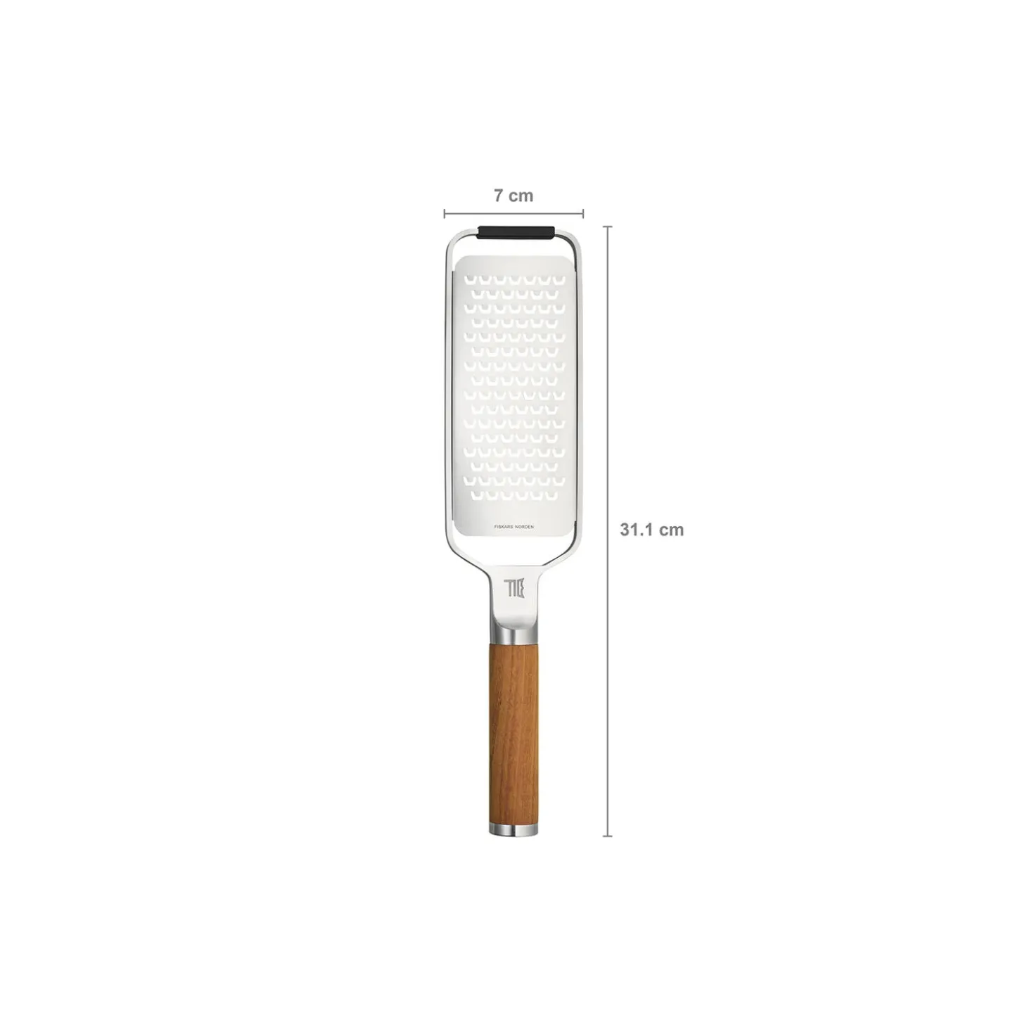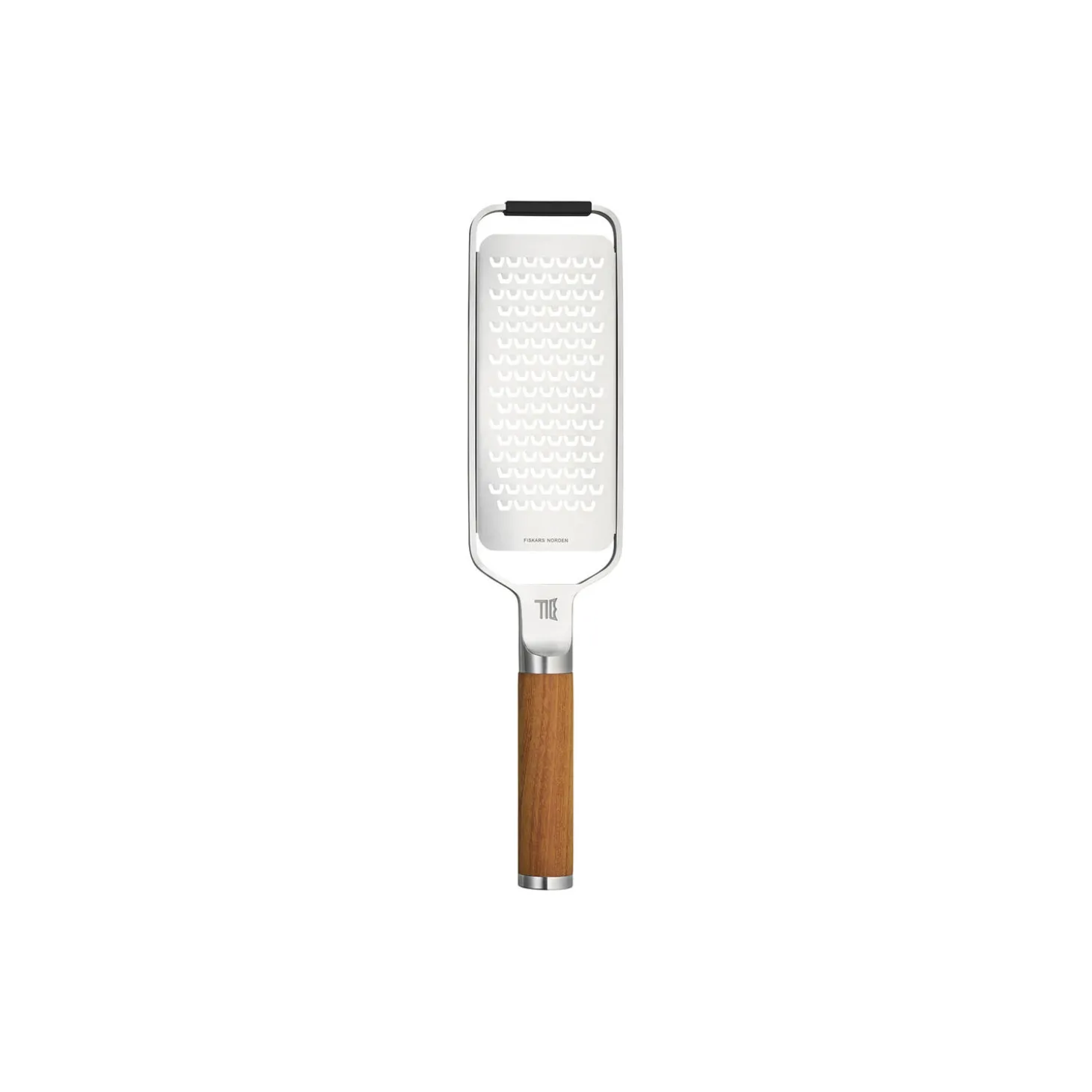 Fiskars Norden redskaber udspringer af mange års håndværksmæssige traditioner med dybe rødder i den nordiske muld. Redskaberne er fremstillet af materialer i høj kvalitet. Det grove Norden rivejern har et blad i rustfrit stål af højeste kvalitet, der gør det nemt at rive gulerødder, bløde oste, ingefær og meget mere. Rivejernets unikke håndtag er fremstillet af varmebehandlet birketræ, som stammer fra ansvarligt dyrkede skove, og gummibenene sikrer, at rivejernet står fast under brug. Ligesom alle andre Norden-redskaber er rivejernet perfekt afbalanceret, hvilket giver god komfort og kontrol, og dets smukke design passer uden problemer ind i det moderne køkken. Designet i Finland.