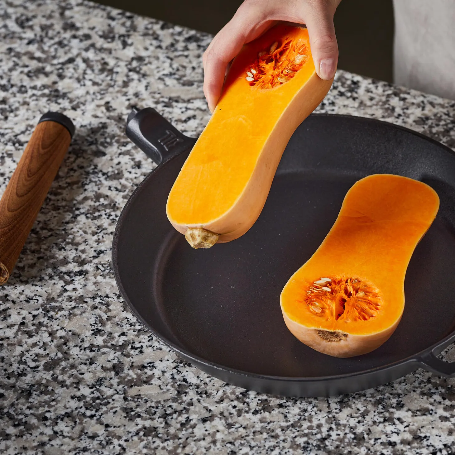 Fiskars Norden er en serie af køkkengrej i støbejern. Serien er en innovativ kombination af premium materialer, som tåler høje temperaturer, og har overlegne non-stick egenskaber. Støbejernspanden er inspireret af den nordiske natur – og traditioner, og vil med sine unikke egenskaber hjælpe med at frembringe kraftige smage til dine retter. Den unikke Thermium™ mineralbehandling på overfladen af støbejernet giver gryden overlegne non-stick egenskaber selv ved høje temperaturer. Mineralbehandlingen sikrer også, at støbejernet ikke ruster eller kræver pleje med olie. Aftageligt håndtag i finsk birketræ.