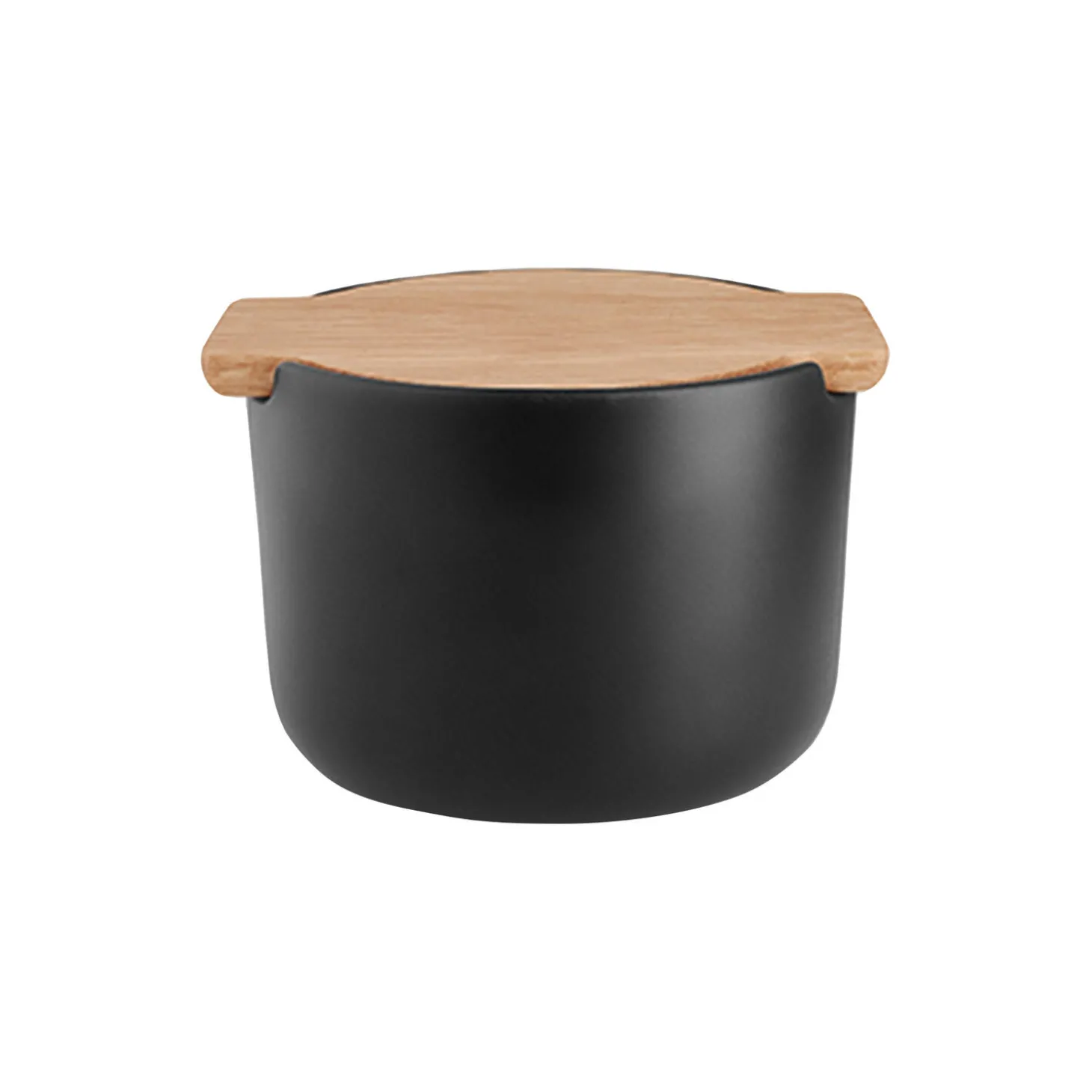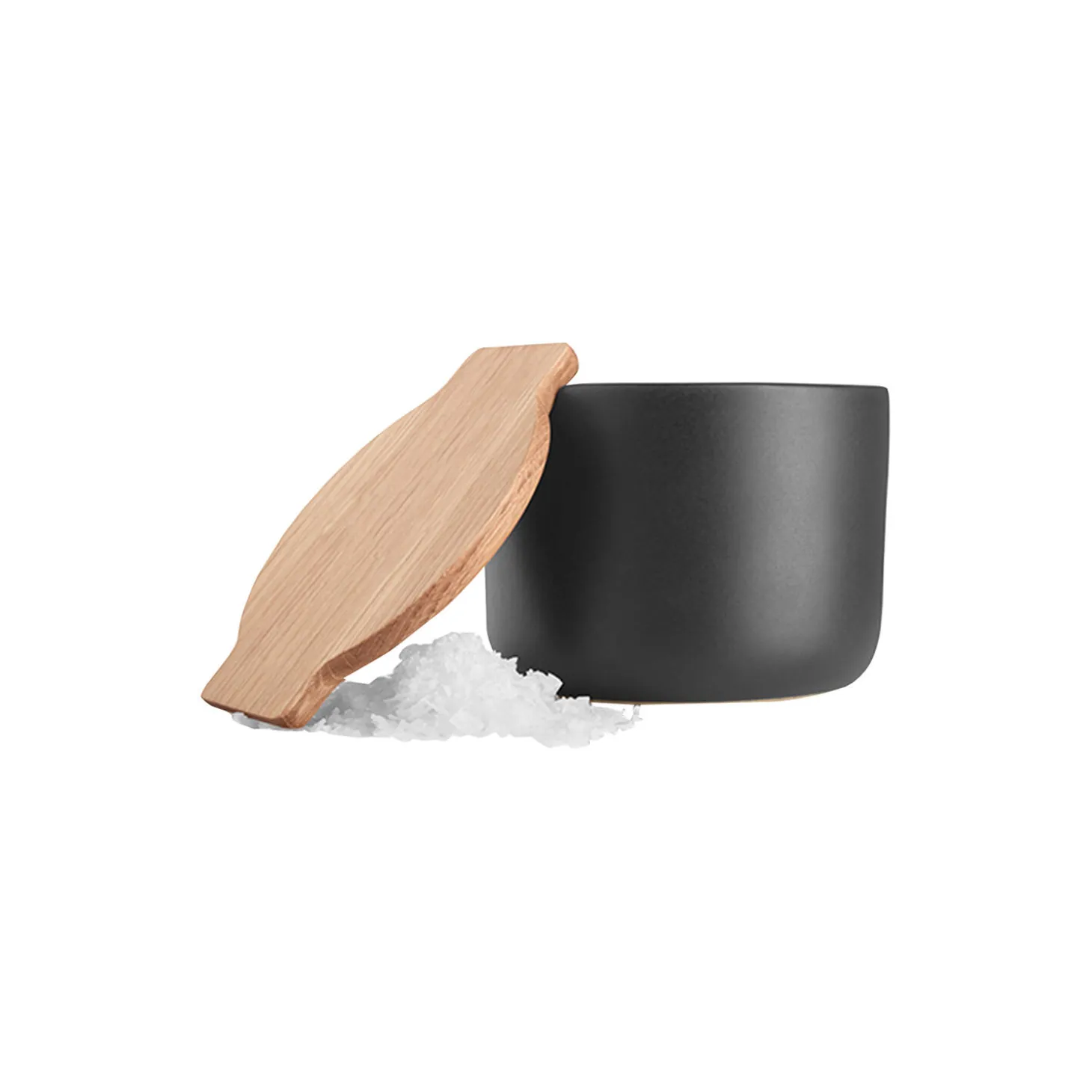 Nordic kitchen saltkar med løst låg i olieret egetræ tåler med sit delikate design at stå fremme, også når maden ikke er på bordet. Låget har en hygiejnisk og praktisk funktion, som sikrer, at der ikke kommer stegeos i saltet. Karret kan også bruges til f.eks. opbevaring af krydderier eller andre ejendele som smykker. Karret tåler maskinopvask, låget skal dog vaskes i hånden. Låget vedligeholdes ved regelmæssig oliering. Fremstillet i sort stentøj med olieret egetræslåg.