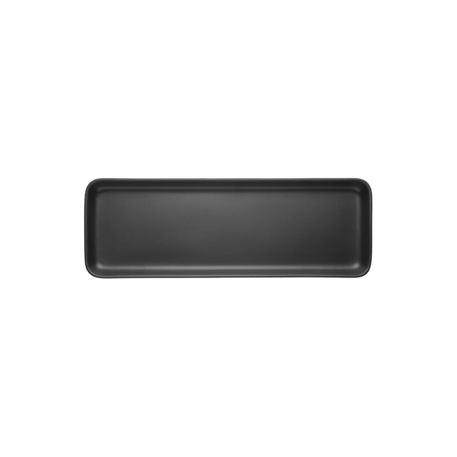 Serveringsfadet i elegant sort stentøj fra Nordic kitchen gør lidt ekstra ud af hverdagens borddækning. Brug f.eks. serveringsfadet til tapas, snacks, ost og mindre anretninger. Fadet kan let kombineres med den kvadratiske skål og det mindre rektangulære fad fra samme serie. Disse kan stables sammen og dermed fylde mindre i skuffer og skabe. Fremstillet i sort stentøj. Tåler ovn, mikroovn og maskinopvask.
