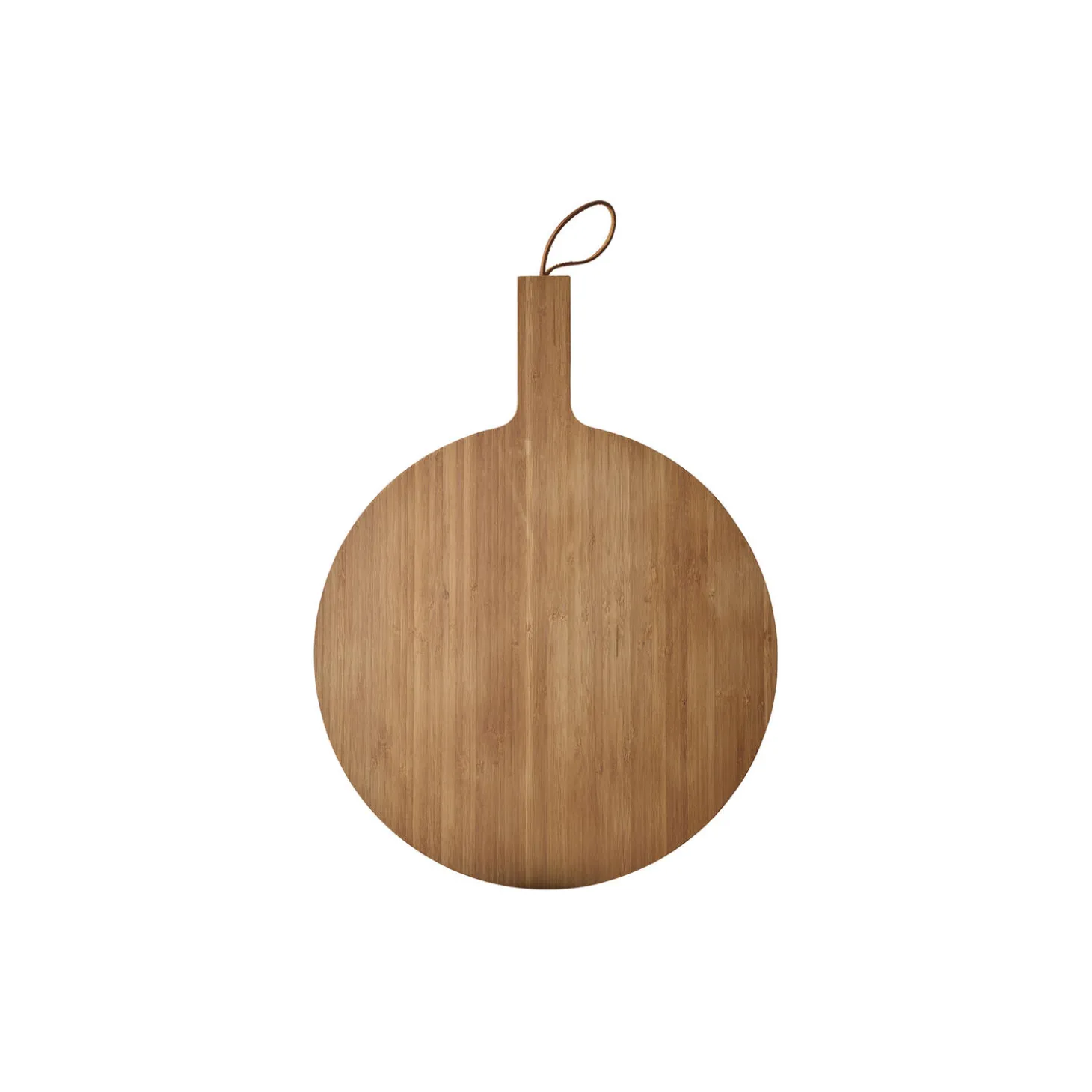 Skærebrættet er udført i FSC-certificeret bambus, som er blevet karboniseret for at give træet et smukt, naturligt mørkt udseende. Det runde design gør det både elegant og praktisk til mange forskellige anvendelser i køkkenet. Træets egenskaber gør skærebrættet utroligt hårdført, men samtidig skånsomt mod dine knive. Læderstroppen gør det nemt at hænge skærebrættet op, så det altid er lige ved hånden og samtidig bliver en del af indretningen i dit køkken. Vask det i hånden efter brug og smør med olie efter behov for at bevare dets skønhed og holdbarhed.