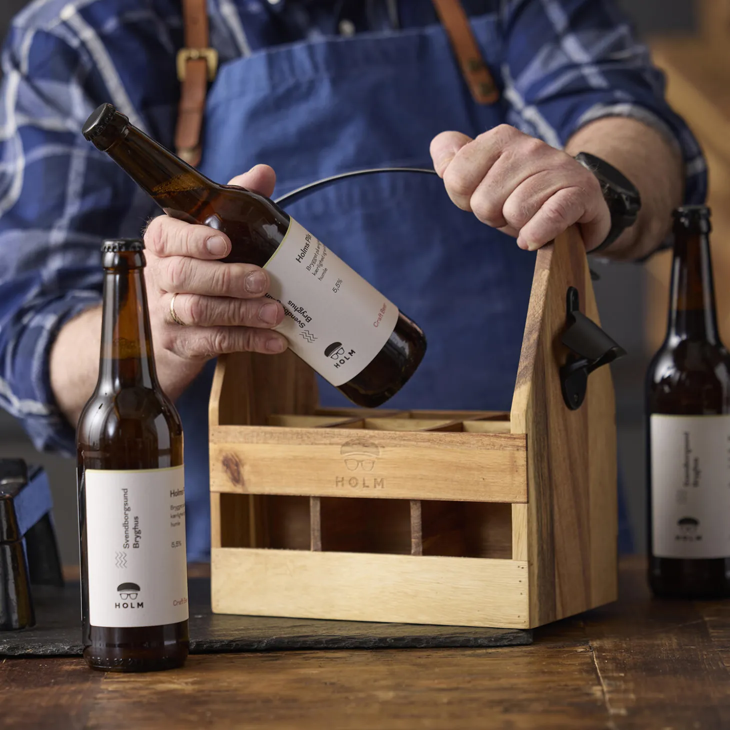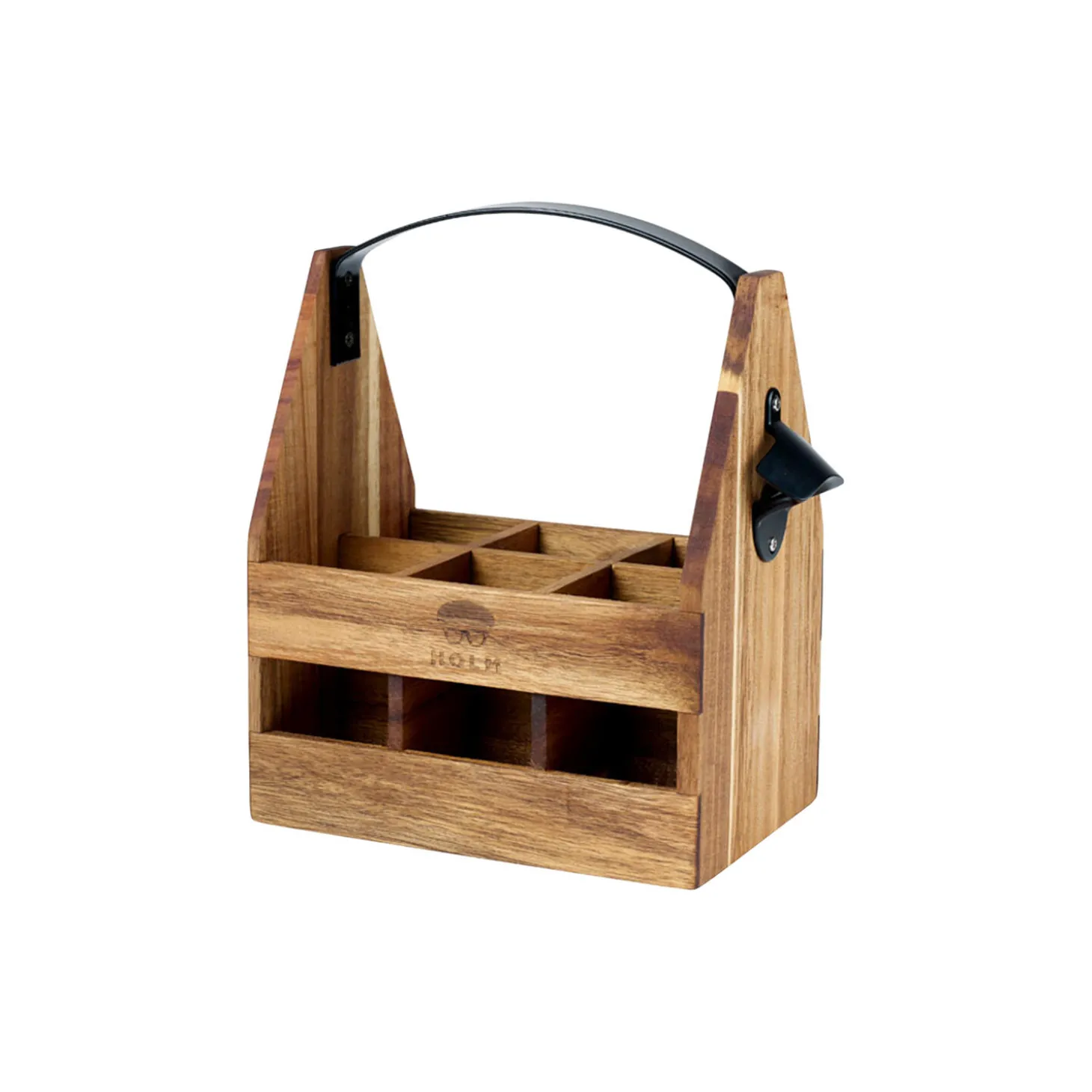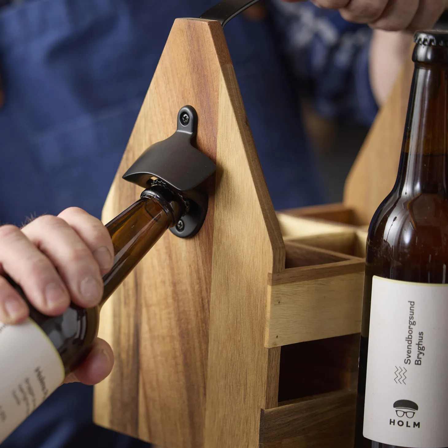 Ølkasse med plads til 6 øl eller sodavand i akacietræ.Kassen er velegnet til en picnic eller blot en tur i haven.Oplukker på siden.Sættes aldrig i blød.Varen er produceret i FSC®-certificeret akacietræ (FSC-C166612).