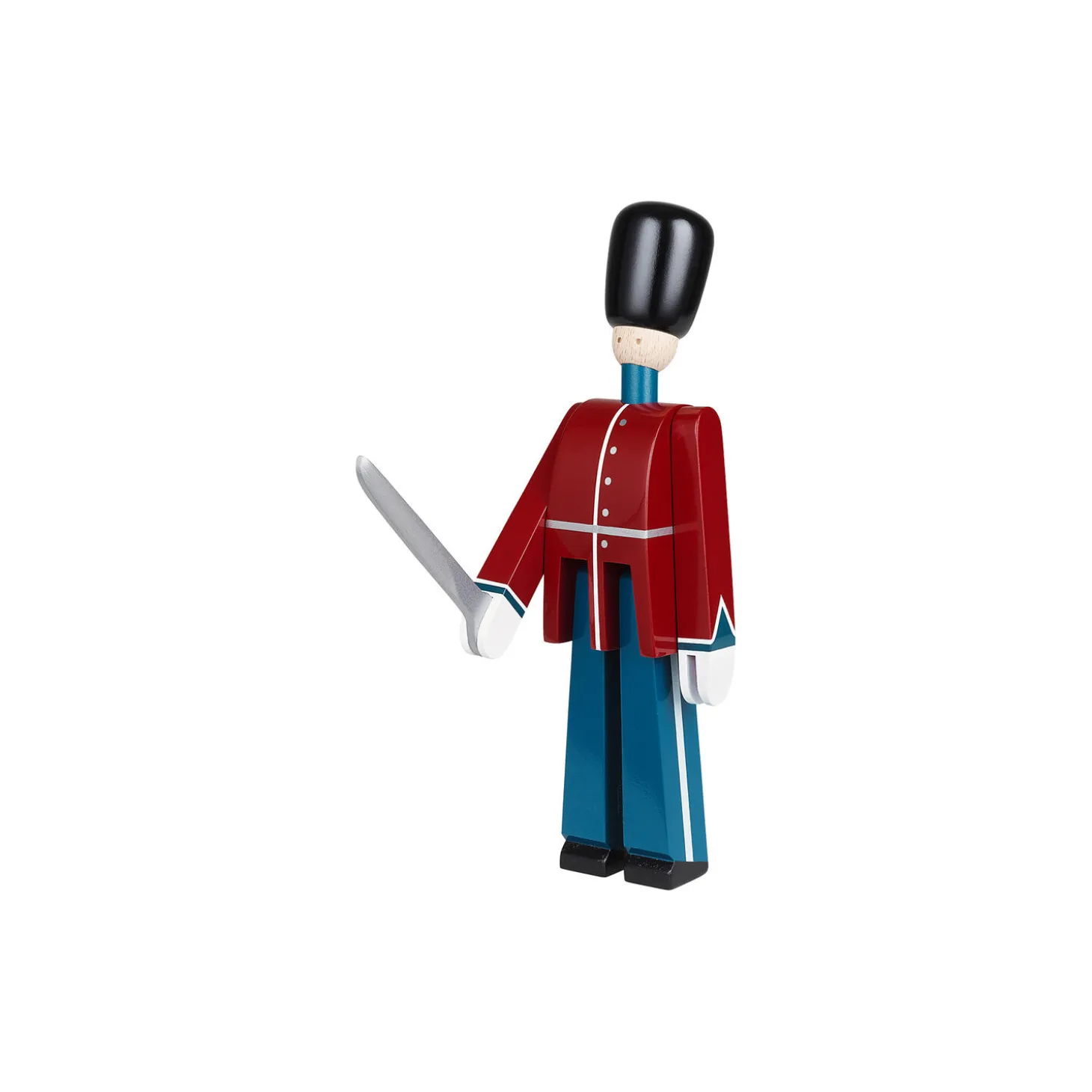 Find den søde og lille Officer med sabel og i røde, blå samt hvide farver. Denne mindre udgave fra danske Kay Bojesen er lavet af FSC-certificeret træ og papir. Det betyder, at der ikke er fældet mere træ, end hvad skoven selv kan nå at reproducere. Officeren så første gang dagens lys i 1940 i forbindelse med Kong Christian den Xs 70-års fødselsdag og var en hyldest til den danske konge. Dengang var den fine træfigur og de andre soldater cirka en meter høje. Heldigvis gik der kun to år, før de fine soldater blev lancerede i mindre udgaver. Med den flotte Officer kan du derfor invitere et stykke dansk historie ind i dit hjem – en oplagt gæst på fødselsdagsmorgenbordet, som en fin gave til soldaten og til dem, der værdsætter dansk design. Med sin sabel kan den lille Officer stå stolt fremme på bordet som lederen af Regimentet.