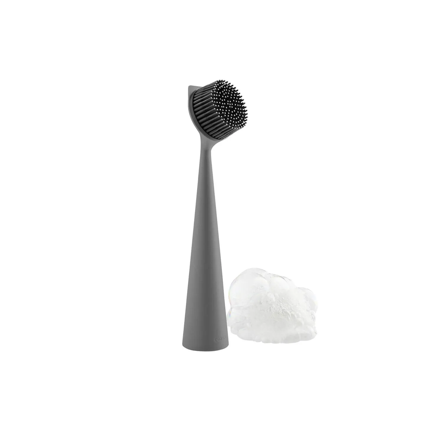 Opvaskebørste med udskifteligt børstehoved i silikone, plast, nylon og stål fra Eva Solo. Farve: elefantgrå. Dimensioner: H: 23 x B: 5,5 cm. Design: Tools®.