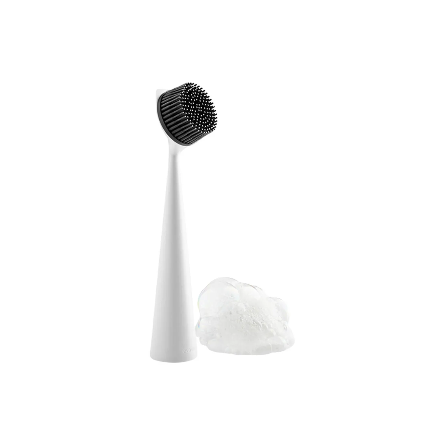 Opvaskebørsten har en praktisk og effektiv kant, som hjælper med at skrabe genstridigt snavs væk og sikrer en høj køkkenhygiejne. De bløde, men slidstærke silikonehår tørrer hurtigt, når børsten står på bordet. Et lod i bunden sikrer, at den står stabilt. Børsten er nem at rengøre og vedligeholde og tåler både høje temperaturer og maskinopvask. Børstehovedet kan udskiftes.
