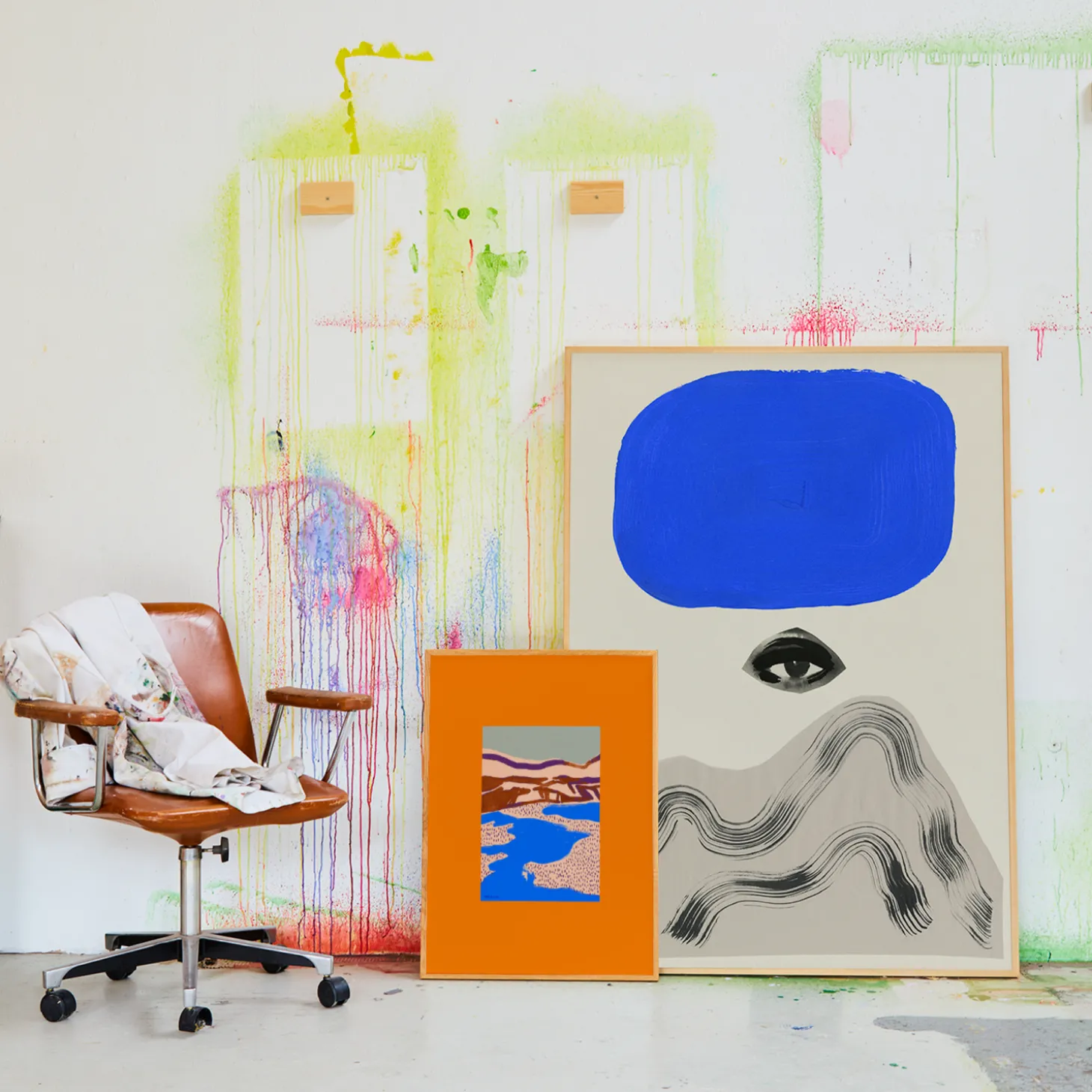 Orange Landscape by Polish artist and illustrator Magdalena Pankiewicz was created by a traveller’s wanderlust during lockdown. Inspired by the Spitsbergen’s Longyear riverbend, the vibrant blue water is punctuated by stippled grasses and flowing mountains – the entire motif offset but a large border in lively orange. The textural rich centrepiece is highlighted by the solid, rich colour surrounding it. Magdalena Pankiewicz for Paper Collective. An art print/poster manufactured in Denmark from environmentally certified materials and production.