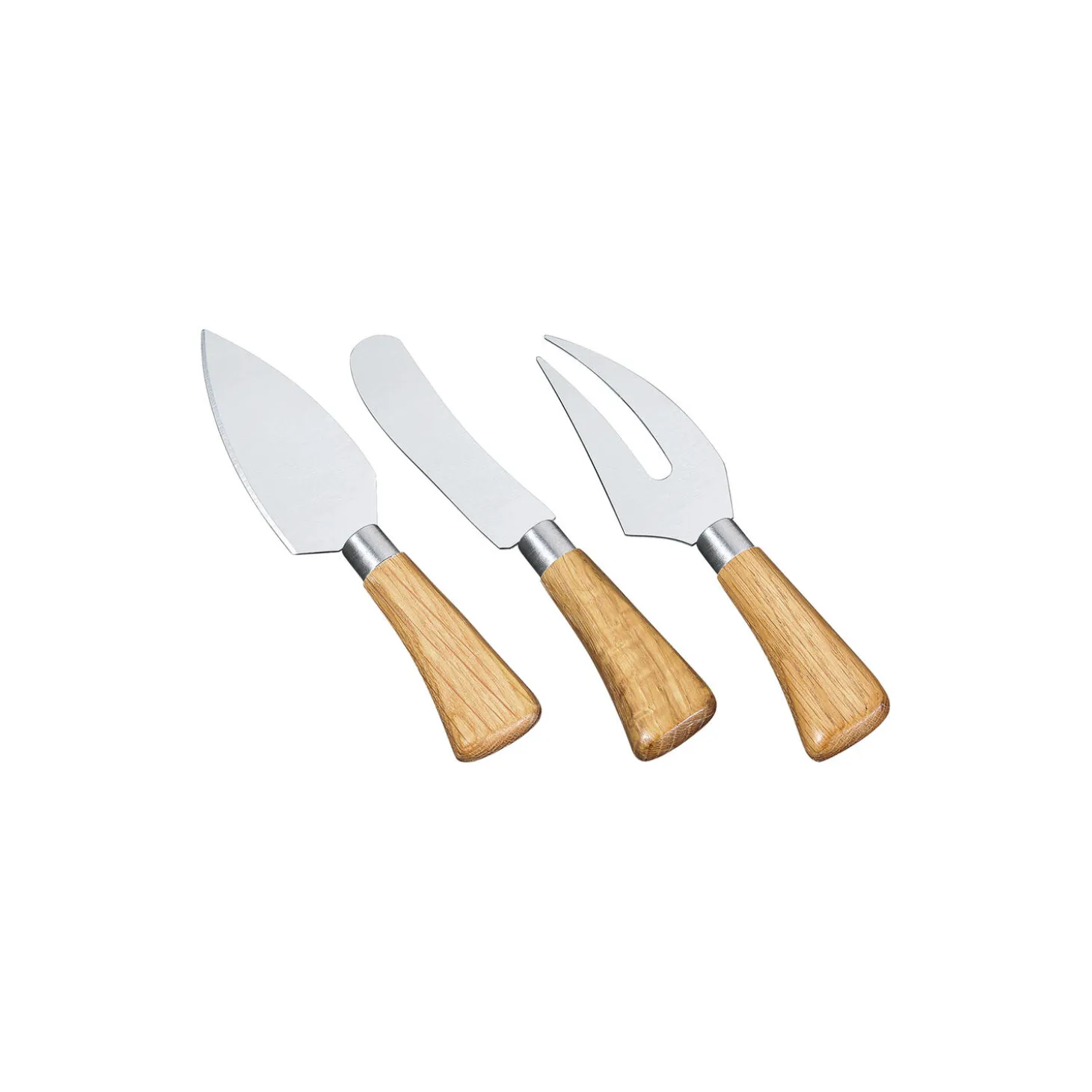 Dette sæt osteknive giver dig alle redskaberne til at gribe dine oste an. Ostegaflen samler let osten op og ned på din tallerken. Smørekniven spreder dig en sandwich, og parmasankniven med dens skarpe klinge vil heller ikke have nogen problemer med Pecorino eller Gruyère. Trioen med de robuste egetræshåndtag kan ses på hvert middagsbord eller buffet.
