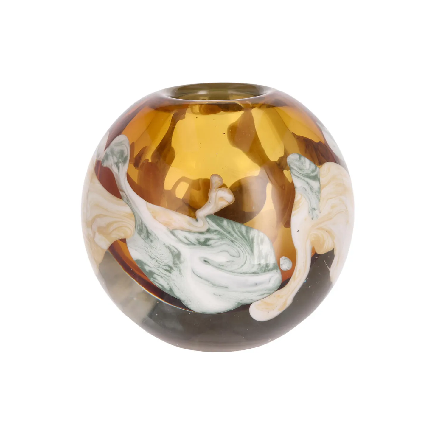 Naturinspireret glasvase i mundblæst glas med smukke naturfarver og bløde former, der er behagelige for øjet. Inspirationen til vasen er hentet i den nordiske natur: Varmebølger og havets bølger, der mødes. D 11 cm, H 10,5 cm.
