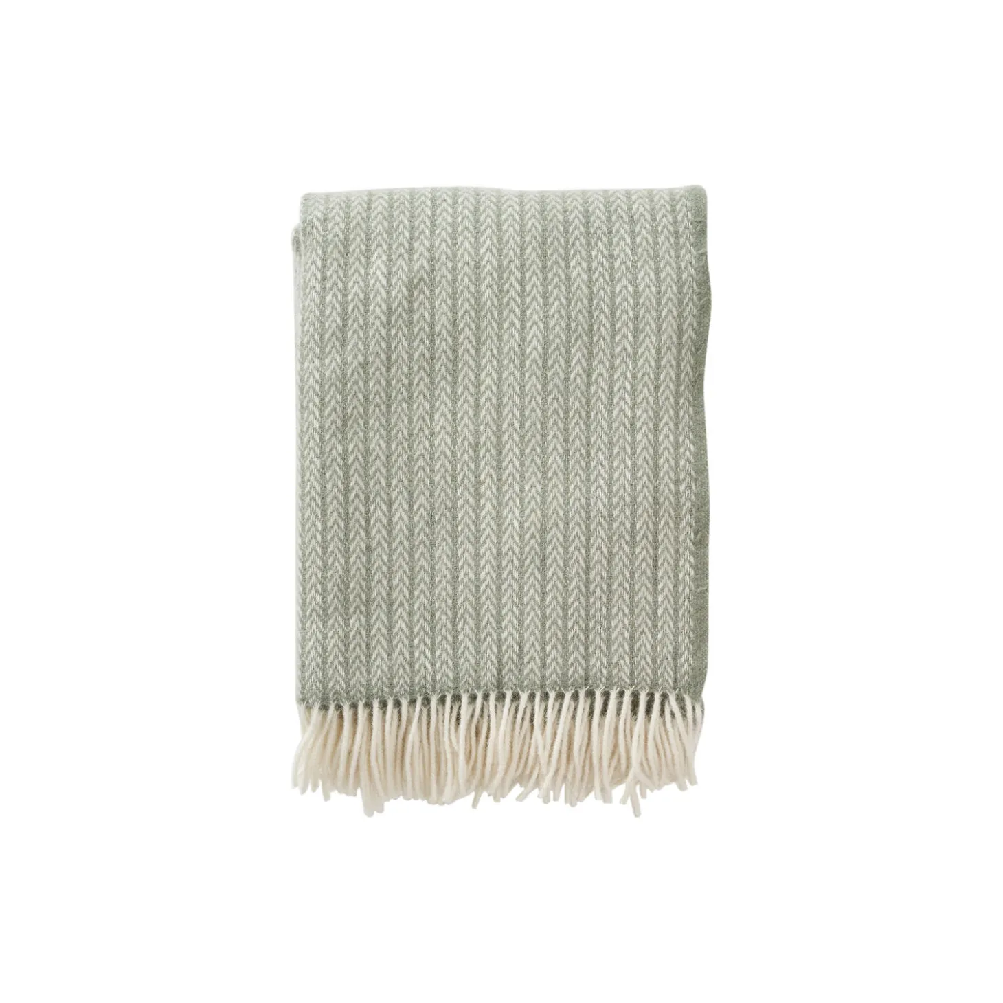 Otis RWS plaid i 100% RWS certified lammeuld fra Klippan Yllefabrik. Farve: dusty green. Mål: 180 x 130 cm.
