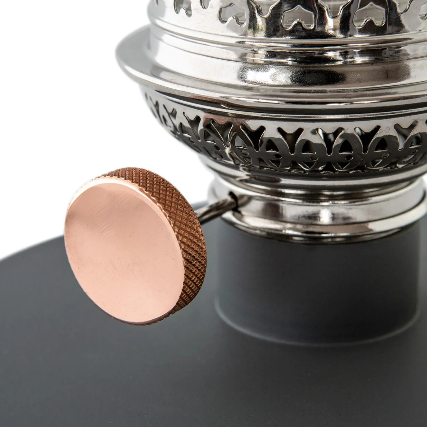 The Patina oil lamps will create a cosy atmosphere wherever it is placed. The big oil lamps are available with copper surface and in several powder coated colors. They can be customized with clear or frosted glass. It is made of stainless steel. The original Patina oil lamp with the copper plated surface will get a beautiful and natural patina if left unpolished.