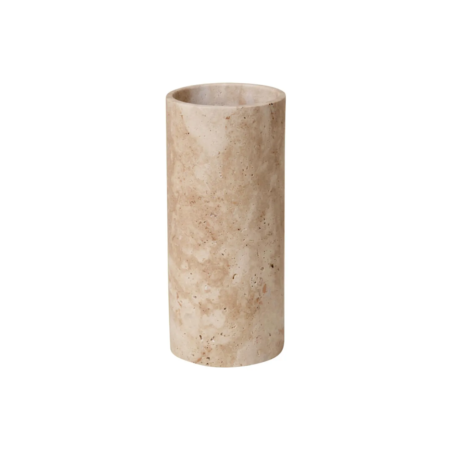 Den elegante og minimalistiske PENELOPE vase fra HOEME er et tidsløst indretningsobjekt med mangfoldige anvendelsesmuligheder. Anvendt i sin rå form eller prydet med blomster eller grene vil den sandfarvede traverinvase tilføre underspillet elegance og skønhed til dit hjem. Kombiner i par eller med den lille og store PENELOPE vase for et komplet udtryk.