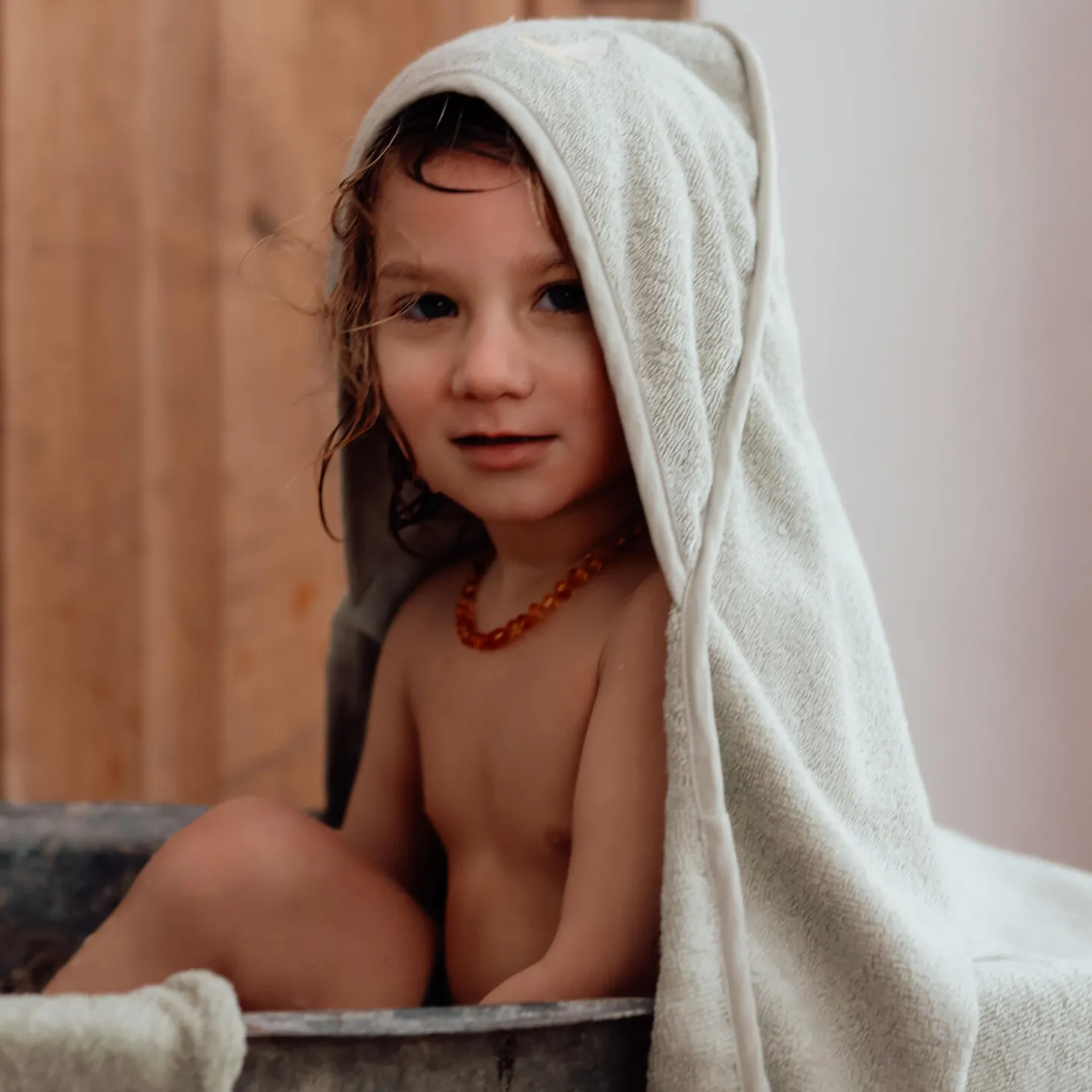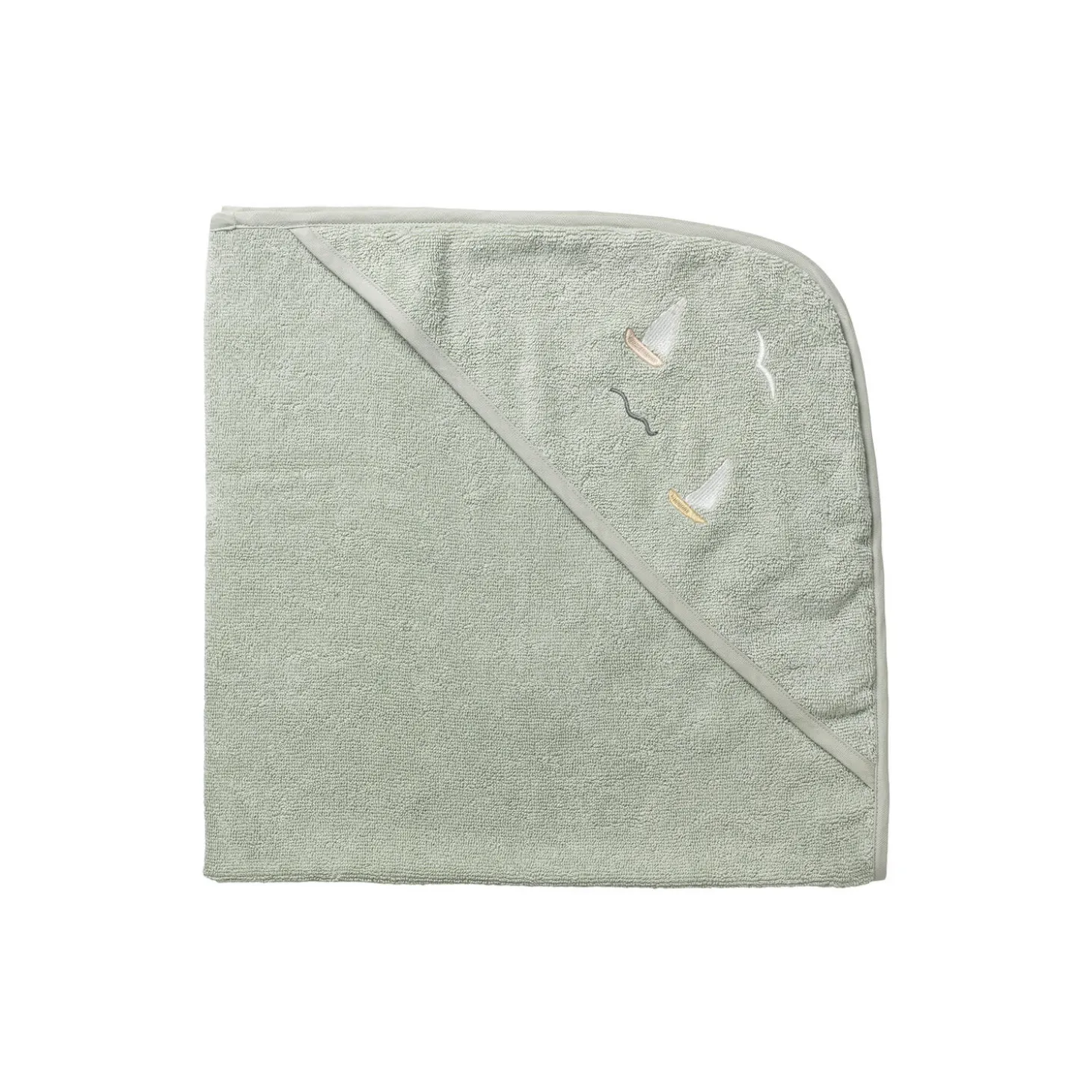 Lækkert vamset babyhåndklæde til de mindste i eksklusiv, tyk og blød frottékvalitet. I det ene hjørne har babyhåndklædet en hætte med et fint broderi inspireret af natur og udeliv.