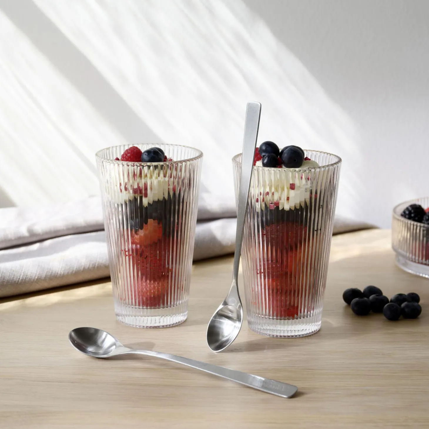Store drikkeglas til den populære Pilastro-serie – perfekt til både hverdag og fest. Det er designer, Francis Cayouette, der står bag Pilastro drikkeglassene. Som resten af Pilastro-serien er designet inspireret af 1920’ernes Art Déco stil, og glassene er med deres koniske form og riller på én gang enkle og elegante. Drikkeglassene er ideelle til vand, juice eller drinks og tåler også varme drikke som kaffe og te. Alt i alt, et godt hverdagsglas, der har et elegant udtryk, men samtidigt er robust og nemt klarer hverdagens håndteringer og ture i opvaskemaskinen.