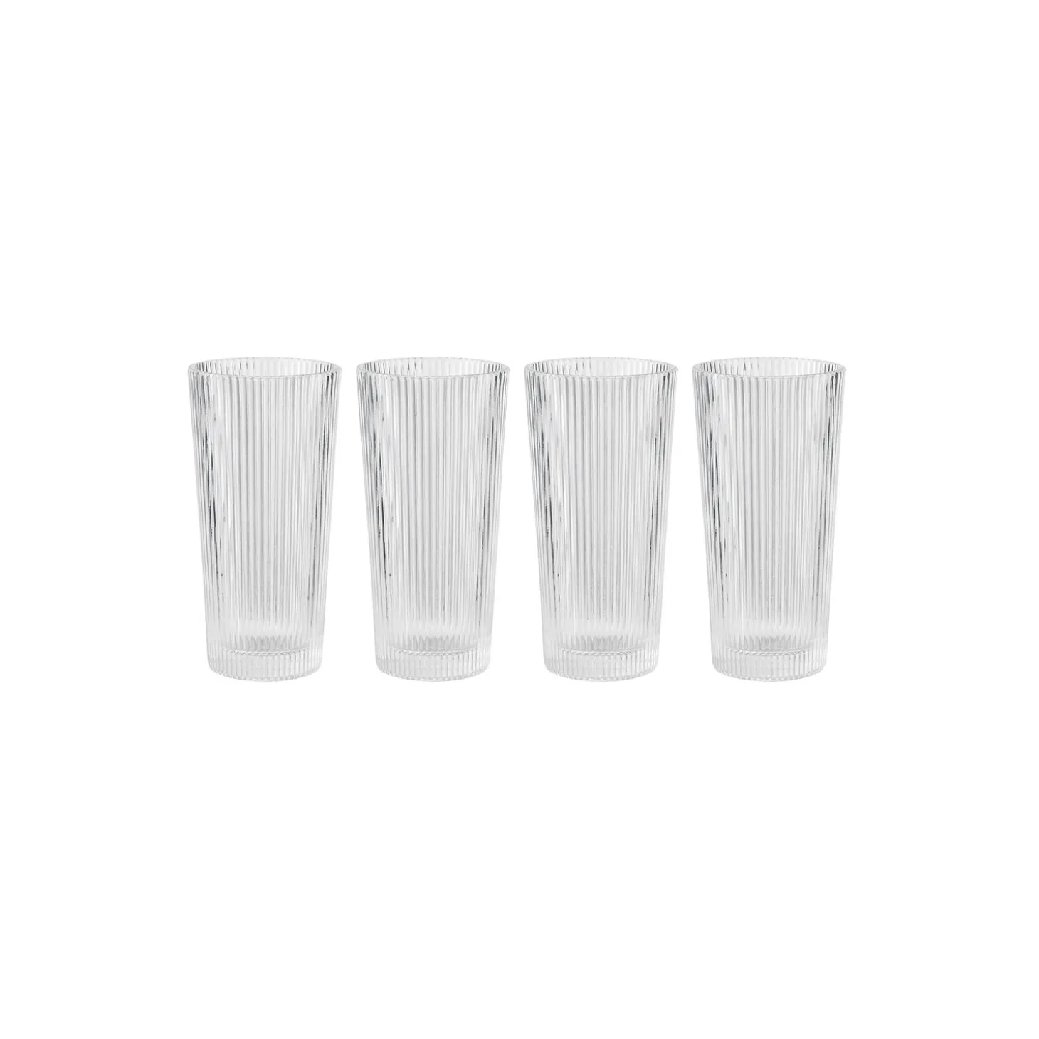 Høje, slanke drinksglas, der er skabt som supplement til Pilastro shakeren, men selvfølgelig også kan bruges som store vandglas, glas til iskaffe eller til varm kaffe og the. Long drink glassene har en stor volumen og er som skabt til servering af drikkevarer, hvor man gerne vil gøre lidt ekstra ud af serveringen. Det er designeren Francis Cayouette, der står bag Pilastro designet. Inspirationen er fundet i 1920’ernes Art Déco stilretning. Designet er med sit rillede formsprog på én gang underspillet og elegant. Glassene er robuste i sin udformning og tåler opvaskemaskinen, og således perfekt til både hverdag og fest.