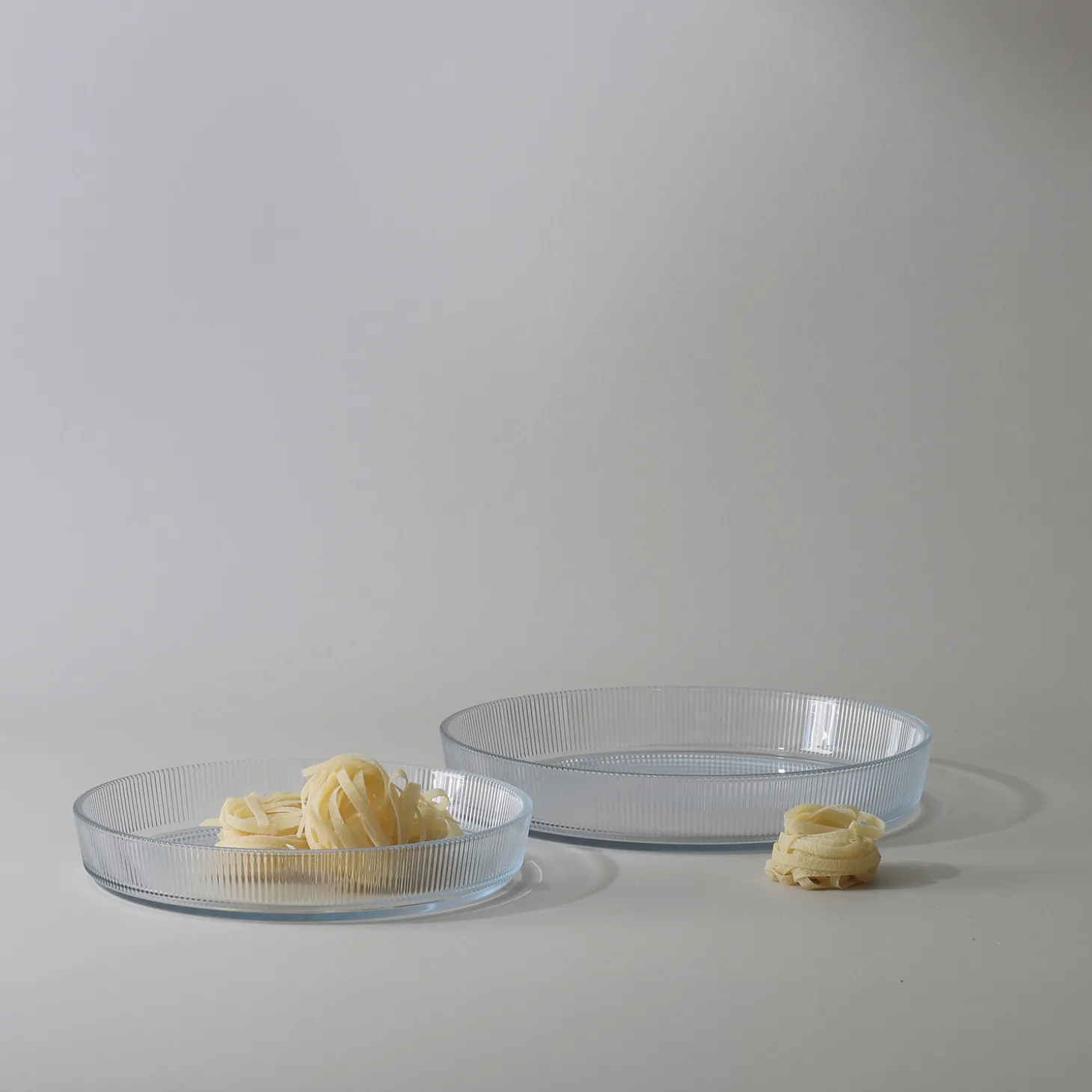 Rummeligt og elegant tærtefad i ribbet glas med et minimalistisk og tidløst design. Perfekt til både bagning og servering – fra ovn til bord med stil. Den varmebestandige glaskonstruktion kombinerer funktionalitet og æstetik og tilfører et raffineret præg til enhver borddækning. Fadet tåler opvaskemaskine og fås også i en mindre størrelse (Ø 24 cm), hvilket gør det velegnet til både større retter og særlige lejligheder. Tærtefadet er en del af Pilastro-serien fra Stelton, designet af Francis Cayouette. Serien forener funktion og æstetik i et tidløst formsprog inspireret af Art Deco.