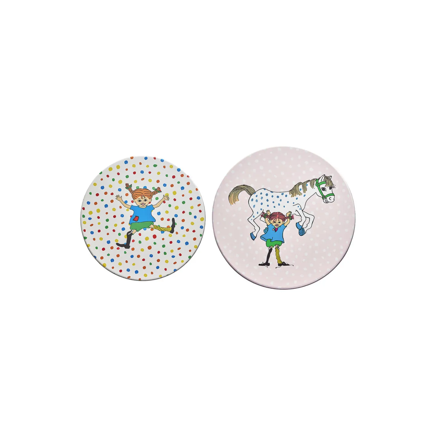 Pippi og hesten dåsesæt 2 stk. fra Muurla. Mål: Ø 18 / Ø 22 cm. Farve: multicolor.