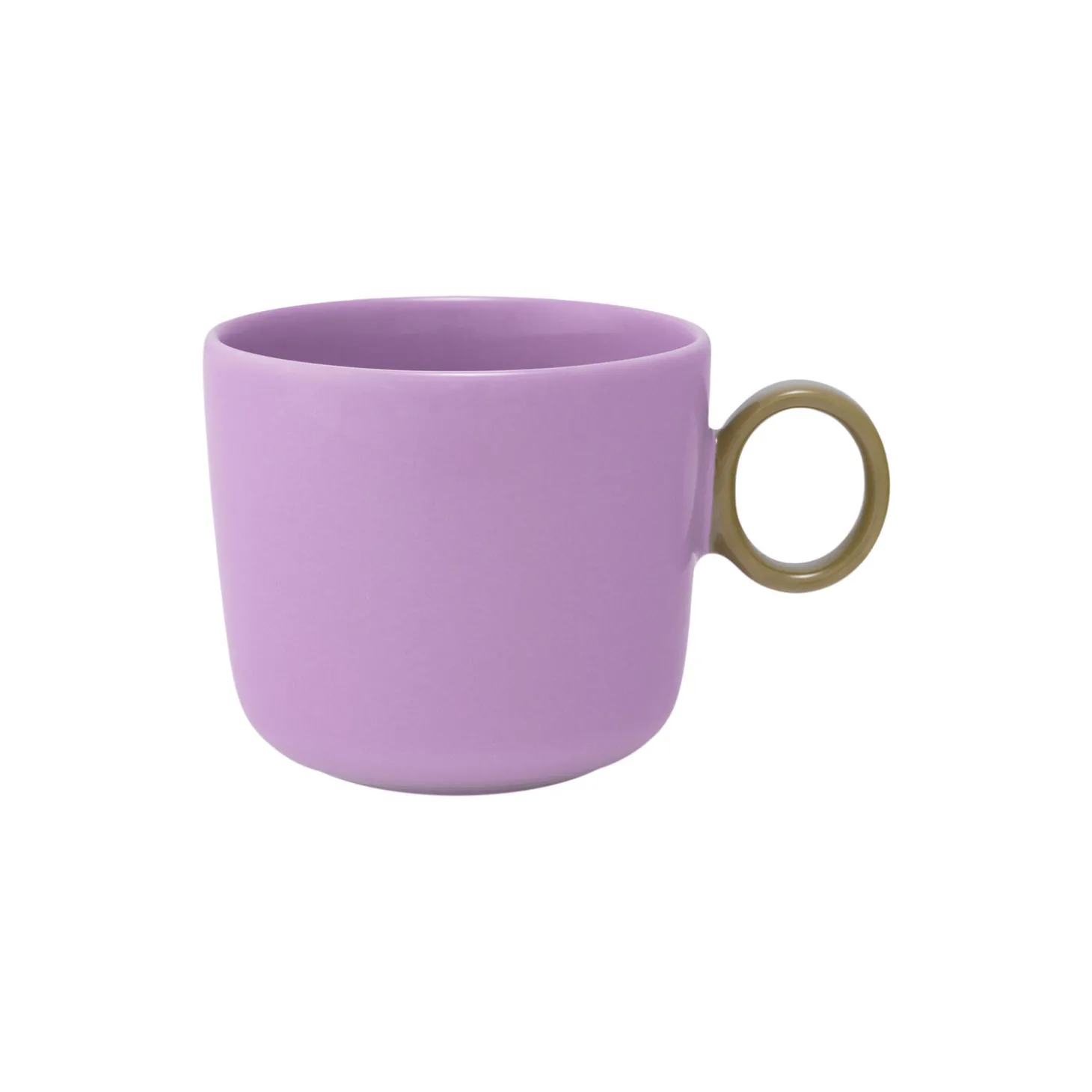Farvekombinationen lilla-oliven er et overraskende og stilfuldt valg. Play-krusets runde, fyldige og legende formsprog ser godt ud og føles godt i hånden. Nyd din te, kaffe eller varme chokolade fra et lilla-olivenfarvet Play-krus, og føl dig godt tilpas. Det fås i forskellige farver, så du kan mikse og matche det med andre ting og lade din personlighed skinne igennem. Den smukke kontrastfarvede hank på kruset er håndmalet og giver kruset et smukt håndværksmæssigt look. Play er en kollektion af ting til hjemmet, som er nemme at mikse og matche. Det er funktionelle ting, som man kan lege med i borddækningen og indretningen. De varme farver, der gløder i solen, og Matisses udklipskunst har inspireret til kollektionen. Kollektionen fokuserer på kunsthåndværk, materialeudtryk, dristige farvekombinationer og en legende blanding af former.