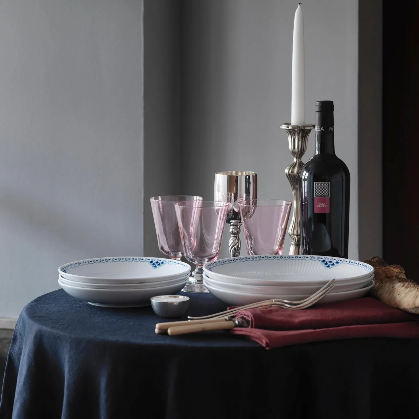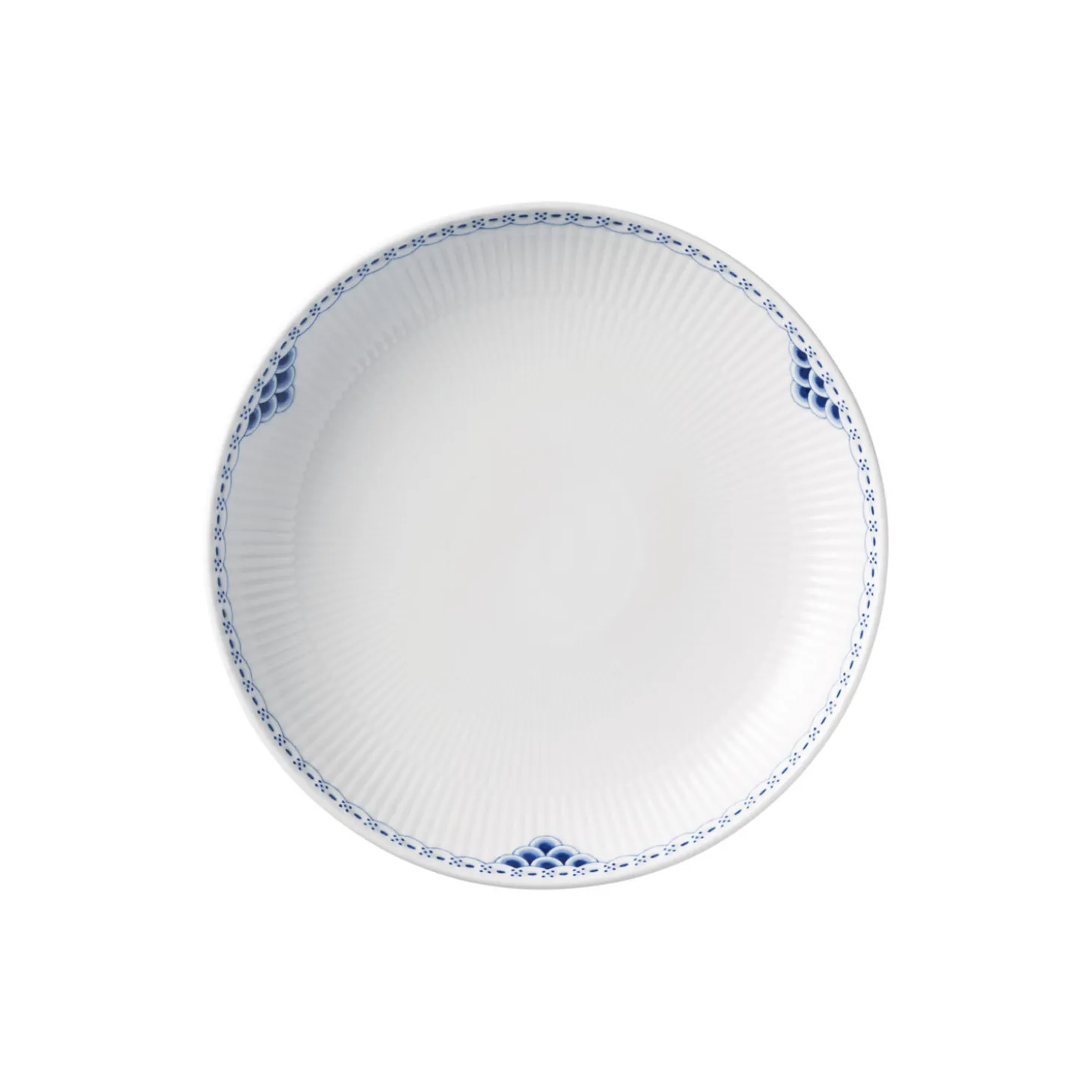 Prinsesse moderne middagstallerken i porcelæn fra Royal Copenhagen. Denne Prinsesse Tallerken på 25 cm er skabt i en smuk kontrast mellem et nutidigt formsprog og en romantisk blonde, der, ligesom de klassiske fiskeskælsdekorationer, er håndmalet langs den brede kant. Tallerken er nyttig som en middagstallerken eller et serveringsfad.