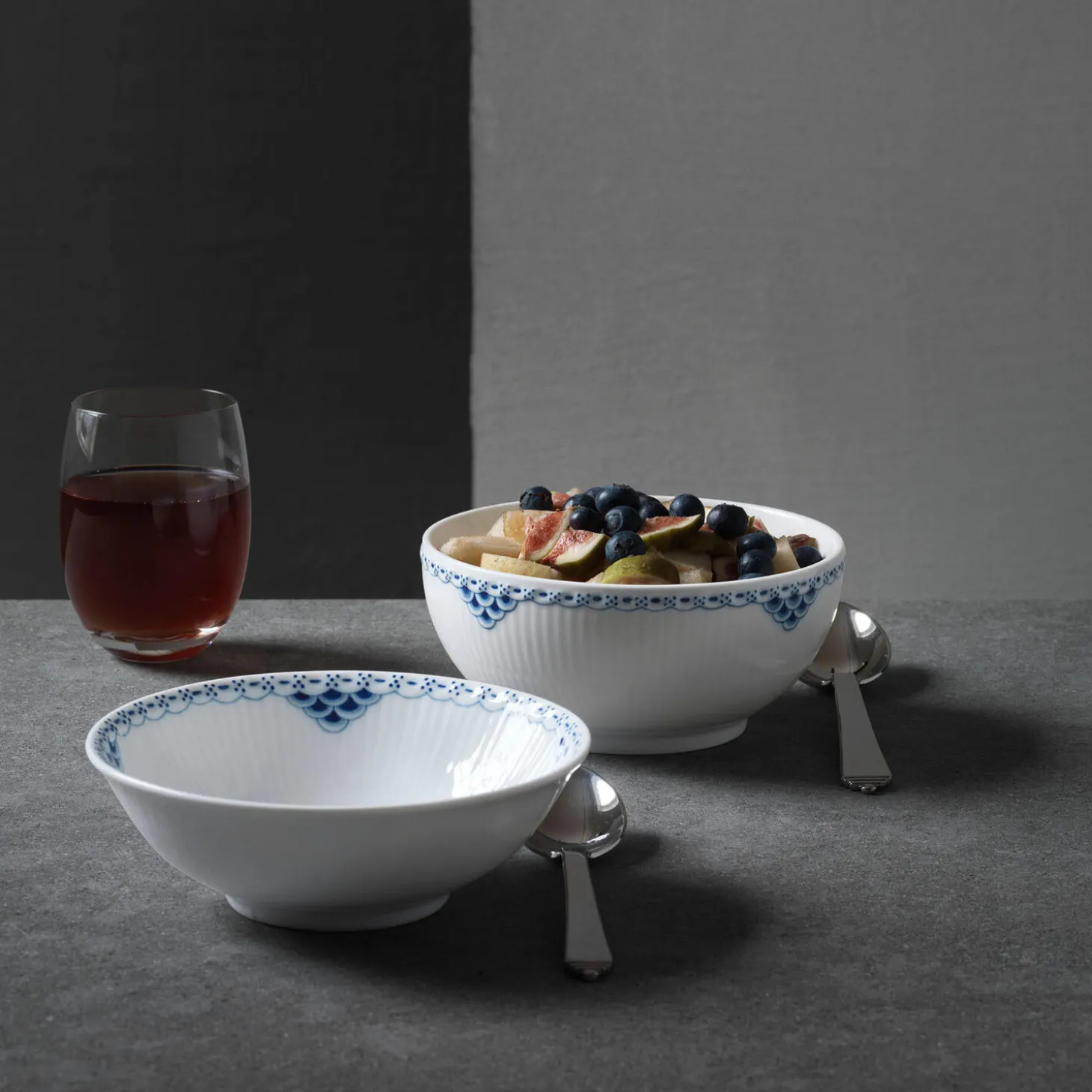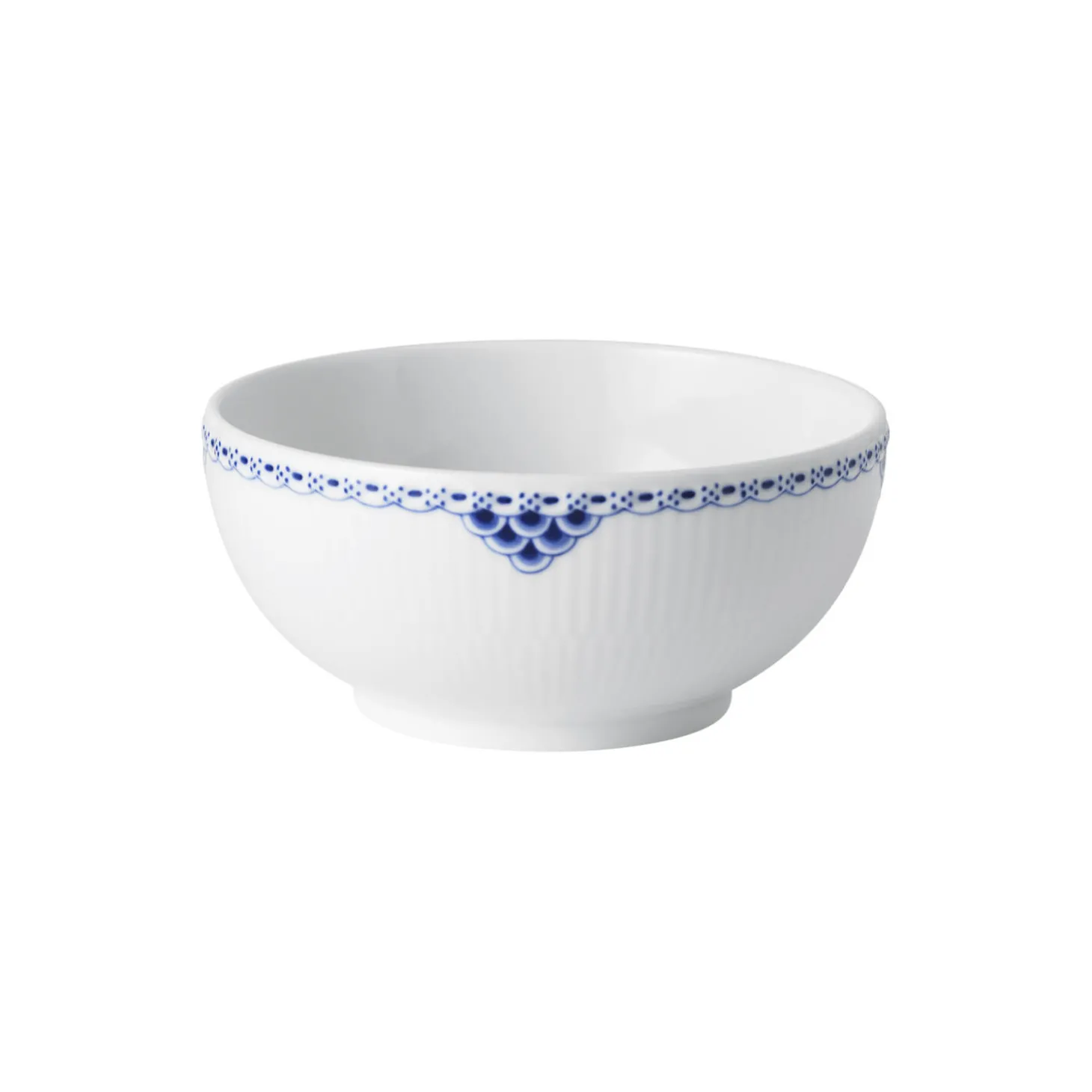 Prinsesse skål i porcelæn fra Royal Copenhagen. Denne skål på 73 cl er håndmalet i det raffinerede Prinsesse-mønster, der skaber en romantisk borddækning i ethvert hjem. Den blå blonde står tydeligt frem mod det hvide porcelæn og giver et evigt tidløst udtryk, der kan kombineres med andre stel fra Royal Copenhagen. Brug skålen til små serveringer, søde sager eller portionsanrettet suppe.