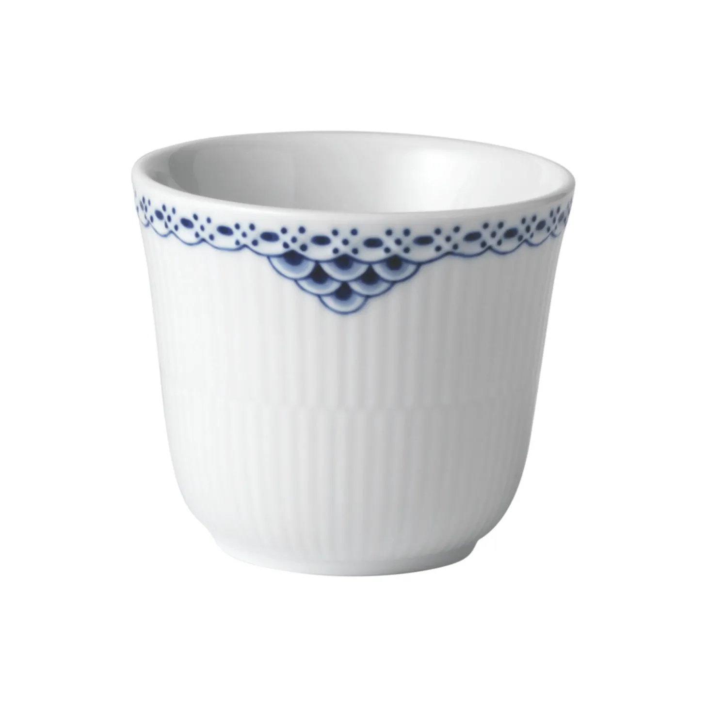 Prinsesse termokop i porcelæn fra Royal Copenhagen. Det håndmalede mønster fra Prinsesse pryder kanten af denne termokop på 26 cl og skaber et klassisk og elegant udtryk i samspil med koppens afrundede formsprog. Koppens indre og ydre lag former et hulrum, der hindrer koppen i at lede varme til ydersiden, og holder dine drikke varme i længere tid.