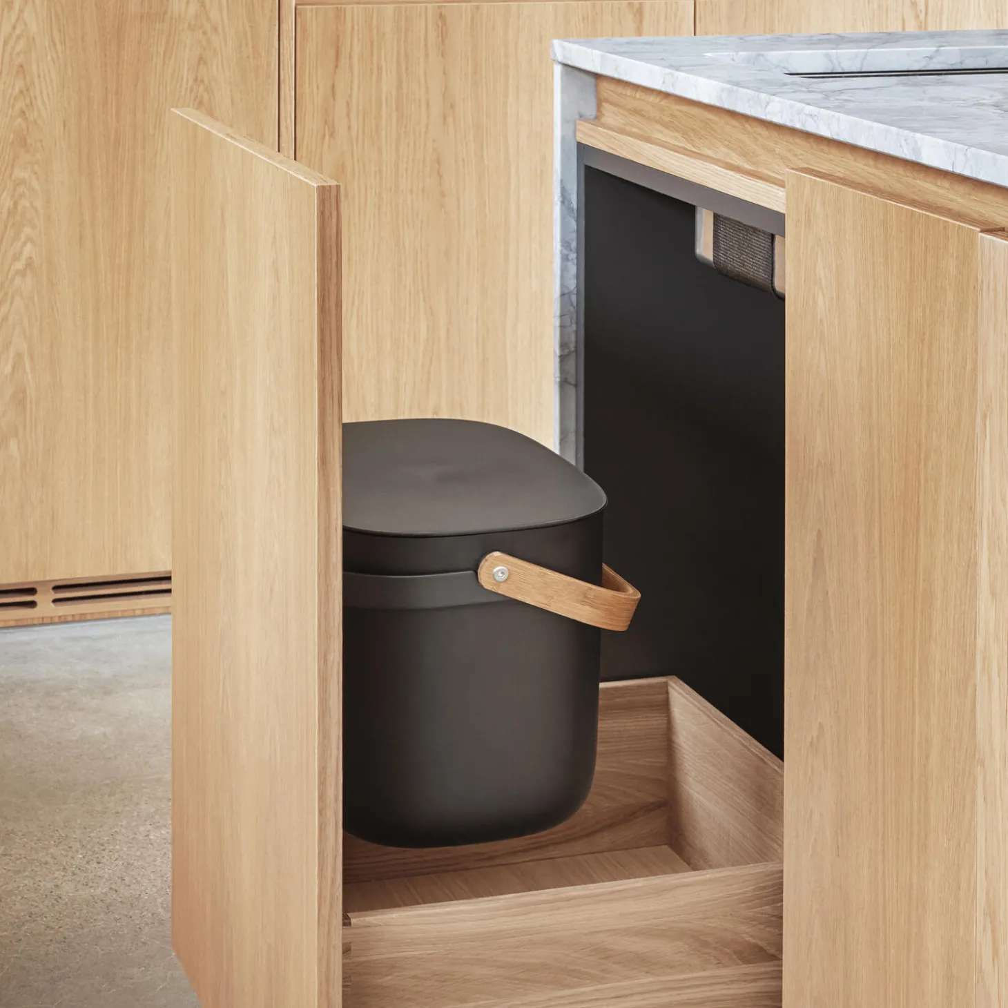 En skraldespand behøver hverken være stilforladt eller gemt af vejen. Den elegante Reflect Affaldssorteringsspand kan stå fremme som en del af indretningen, mens den gør det nemmere at holde hjemmet rent og ordentligt. Med en eller flere affaldssorteringsspande kan du aktivt reducere mængden af affald, der sendes til forbrænding, samtidig med at du støtter genbrug og kompostering ved at separere affald fra genanvendelige materialer som papir, plast, metal og glas. Spandene kan vægmonteres eller stables, så du kan spare på pladsen. Det smarte lågdesign gør det nemt at holde låget åbent, når du smider affald ud, idet det automatisk griber og balancerer på spandens kant. Affaldsspanden eliminerer også behovet for specialposer med den indbyggede poseholder, der hurtigt kan tilpasses forskellige posestørrelser. De indbyggede håndtag gør det nemt at transportere affaldssorteringsspanden, der er fremstillet af genanvendt plast og bambus.