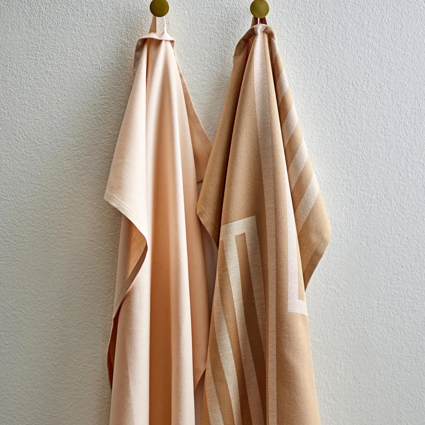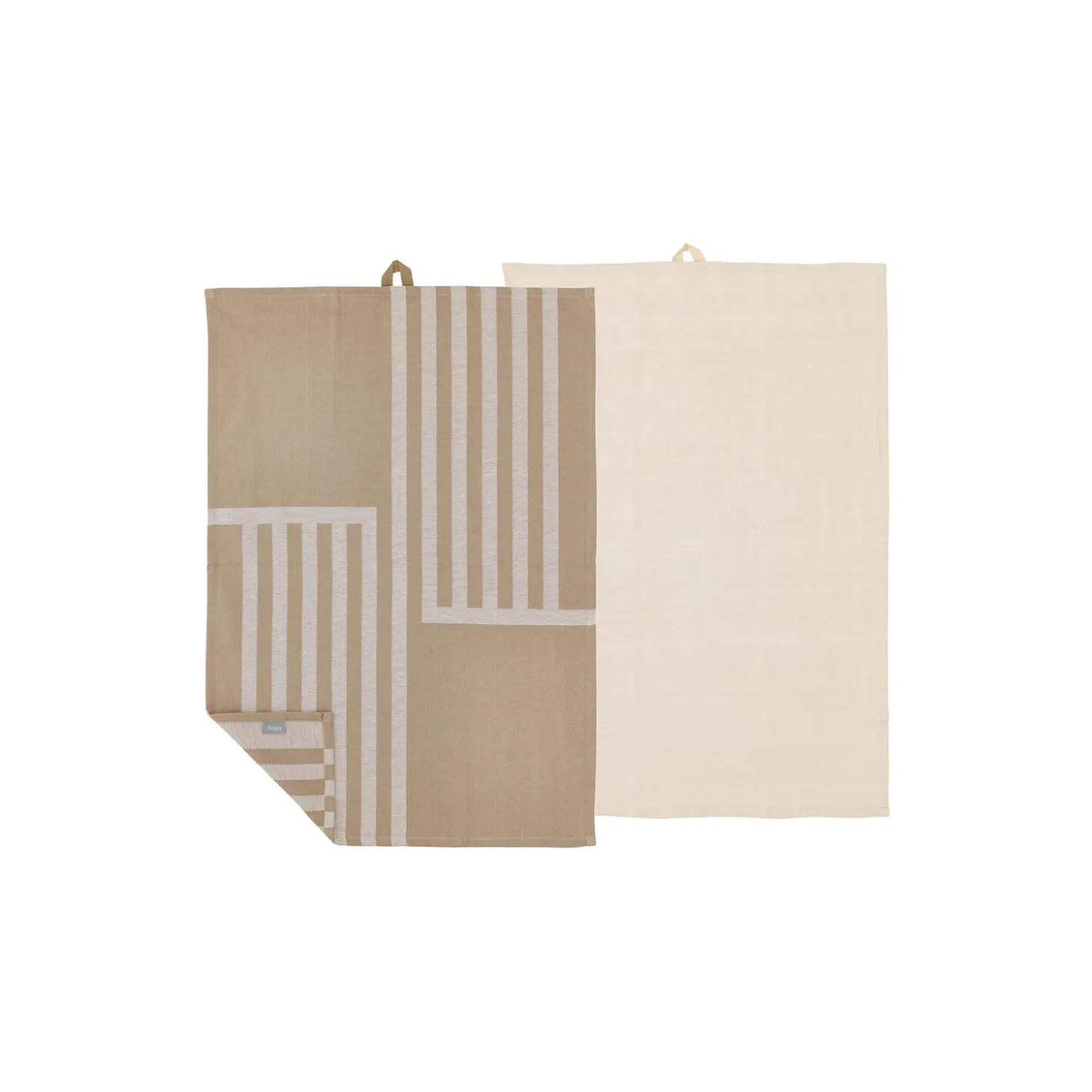 Dette design afspejler vores kærlighed til rene linjer og minimalistisk elegance. Det sofistikerede motiv bestående af lodrette og vandrette striber er både moderne og klassisk. Det grafiske design bliver komplementeret af et viskestykke i en ensfarvet twillvævning.