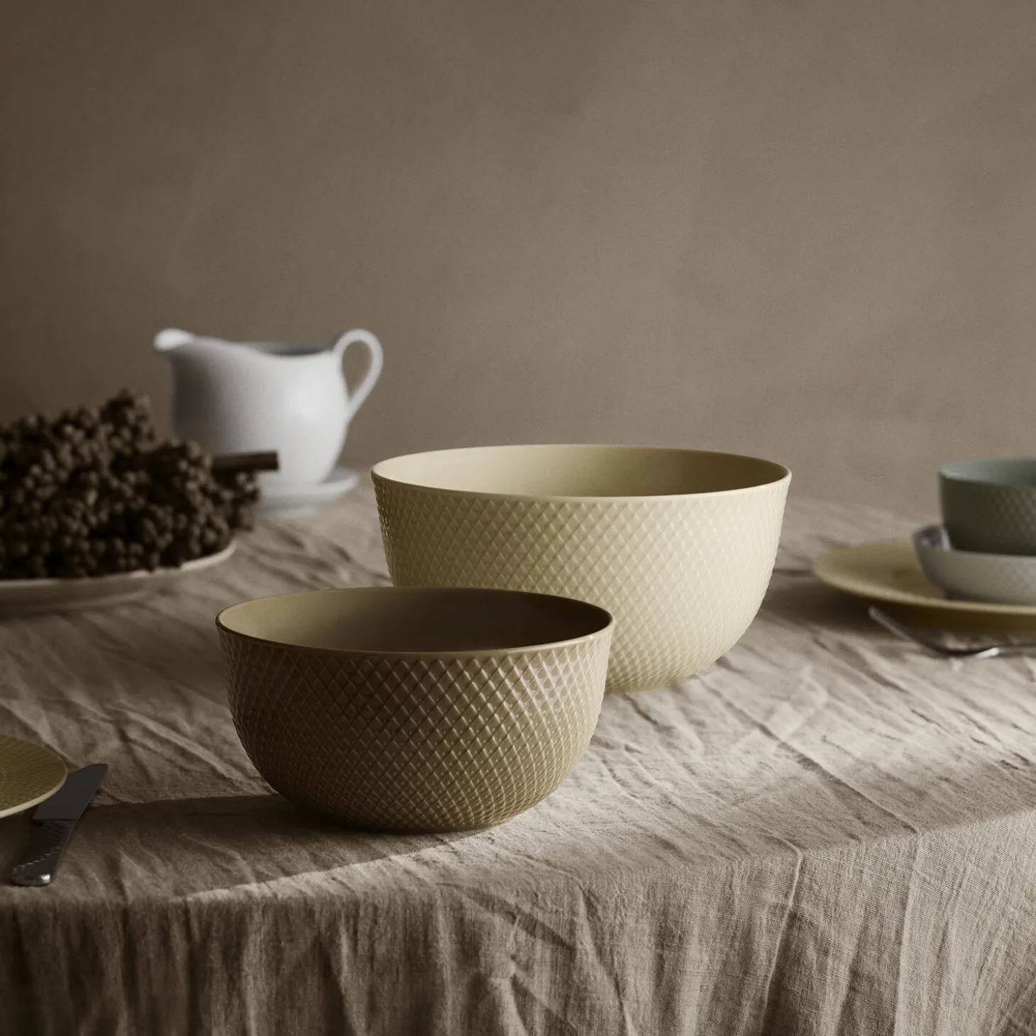 Et jordnært og nærværende udtryk på bordet. Med en farvepalet i fire elegante jordfarver inviterer Rhombe Earth os til at sætte farten ned, være nærværende omkring det vi spiser, dem vi spiser med og at lægge mærke til skønheden i det stel, vi spiser af. Seriens serveringsskål på 22 cm i diameter kommer i den beigefarvede marble, der ligesom de andre afdæmpede jordfarver i Rhombe Earth bringer Rhombe-stellets ikoniske reliefmønster frem på en ny og anderledes måde og indbyder til, at vi går et lag dybere og giver opmærksomhed til maden i skålen, til sanserne og til samtalen med de andre omkring bordet. Alle Rhombe Earth-seriens fire smukke farver – marble, clay, moss og slate – er ligesom i Lyngby Porcelæns populære Rhombe Color-serie nøje udvalgt af designduoen Stilleben, der består af Ditte Reckweg og Jelena Schou Nordentoft. Brug alle de forskellige Rhombe Earth-dele sammen i din borddækning og lad de forskellige størrelser tallerkener titte frem under hinanden, så de lune farver får lov at tale sammen. Tallerkenerne, krusene og skålene i Rhombe Earth er selvfølgelig også både sammen og hver for sig oplagte som supplement til din Rhombe Color-samling eller i kombination med det klassiske hvide Rhombe-stel, hvor de grå og brune nuancer på de enkelte Rhombe Earth-dele sammen med Lyngby Porcelæns linjer til perfektion vil skabe et både moderne og afslappet udtryk og stå smukt op imod det hvide porcelæn.