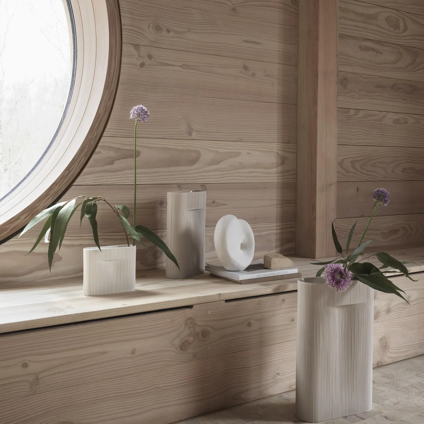 The Ridge Vase offers a fresh approach to flower display with its sculptural expression and artful character, even when not in use. Its refined dent provides added functionality, allowing flowers to stand upright and serving as a subtle handle for easy movement between rooms.