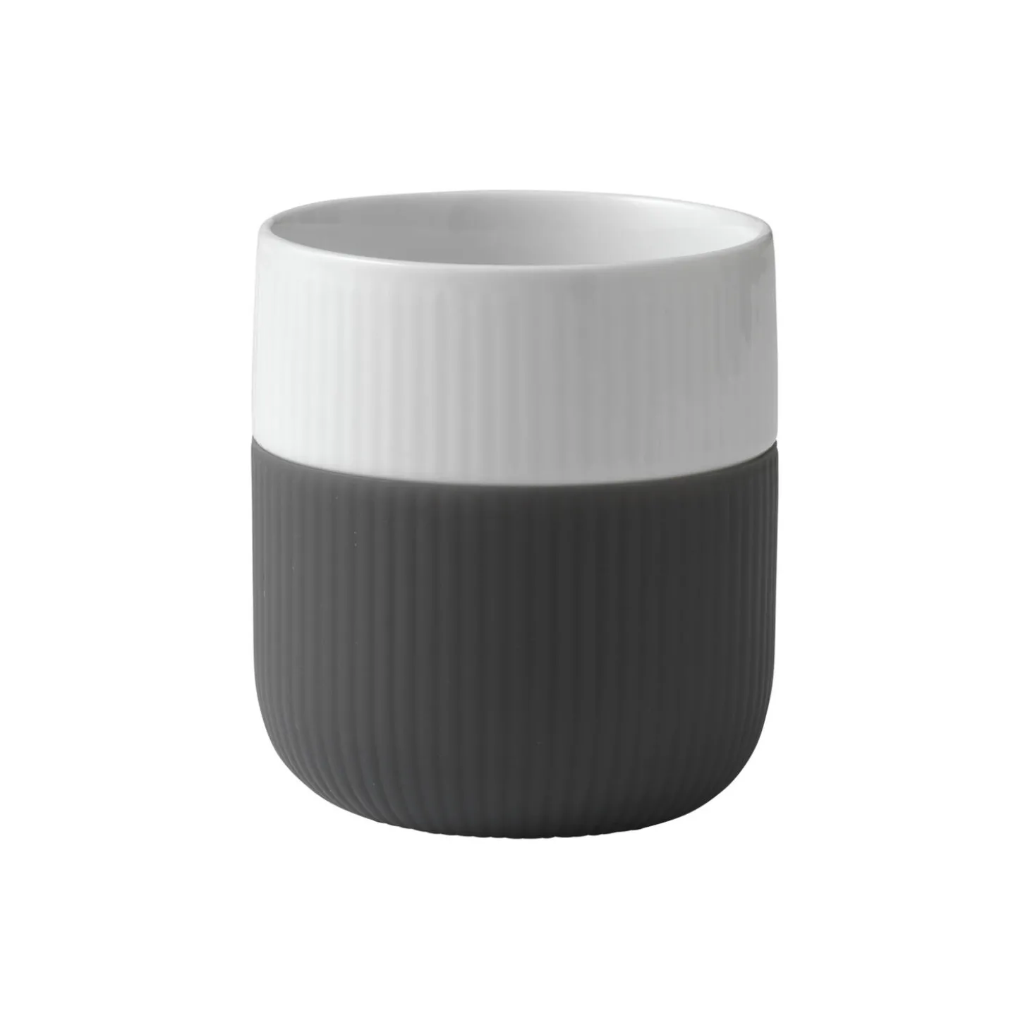 Riflet Contrast krus i porcelæn fra Royal Copenhagen. En smuk antracitgrå farve skaber et monokromt udtryk på dette enkle krus i Riflet Contrast. Kruset på 35 cl er oplagt som kaffekrus eller tekrus, og silikonebunden holder varmen væk fra overfladen.