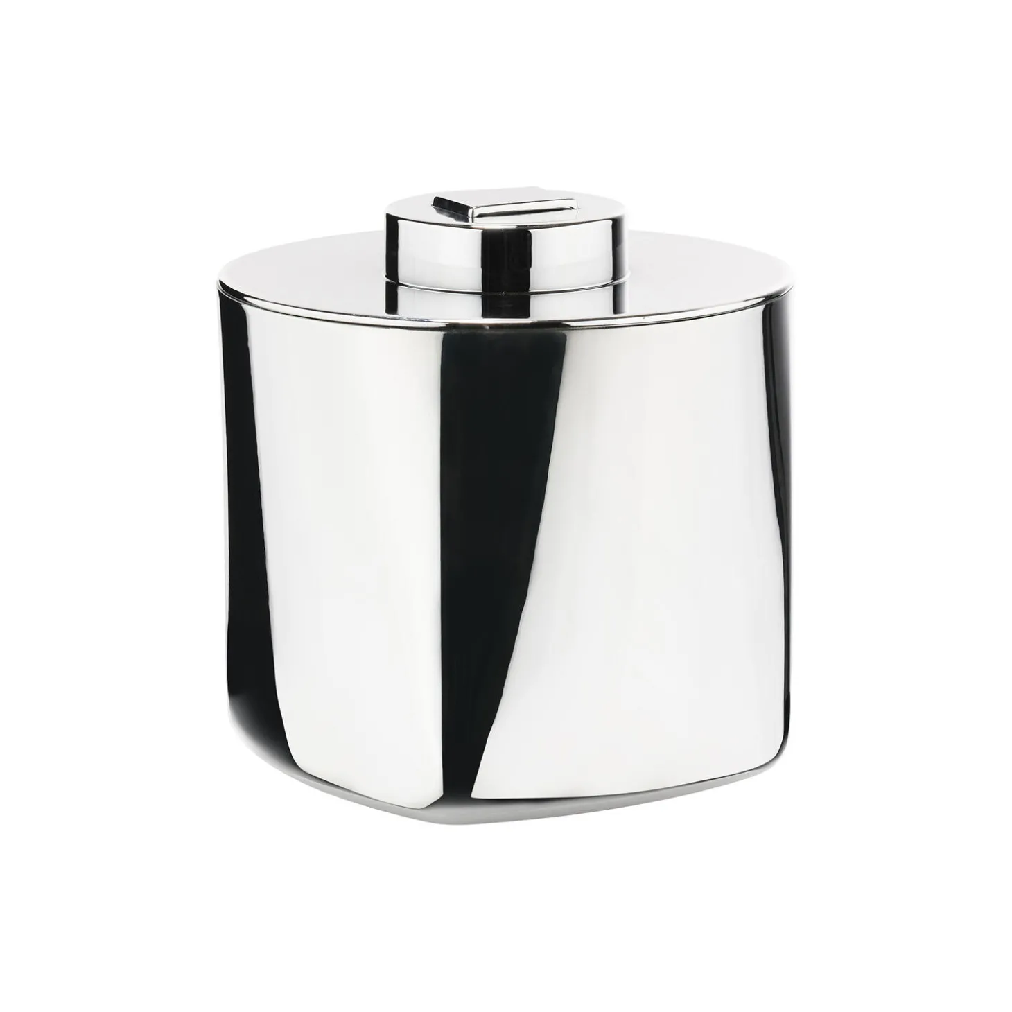 Den danske designduo Mavro//Lefèvre står bag den hyperelegante isspand i rustfrist stål. Som en smeltende isterning glider bundens let kvadratiske facon over i toppens cirkelform. Den afsluttes med et låg, som på genial vis gemmer på en istang.