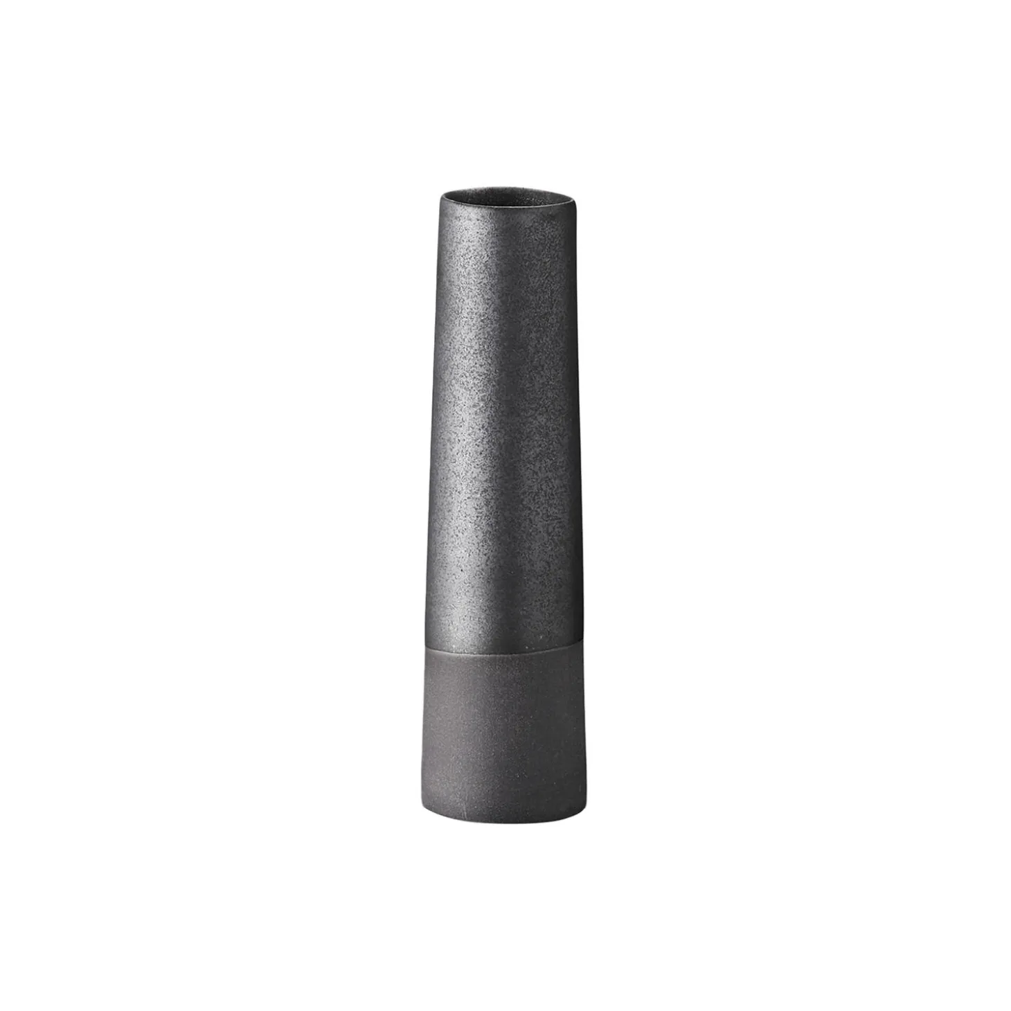 En uhøjtidelig og dekorativ lille vase, der gør sig rigtig godt med en enkelt blomst fra grøftekanten eller den ene blomst der stadig er frisk, når du smider en buket ud. Vaserne er forskellige – højde og hældning varierer. Støbt i indfarvet porcelæn og forarbejdet i hånden. Fremstillet hos Ditte Fischer i København.