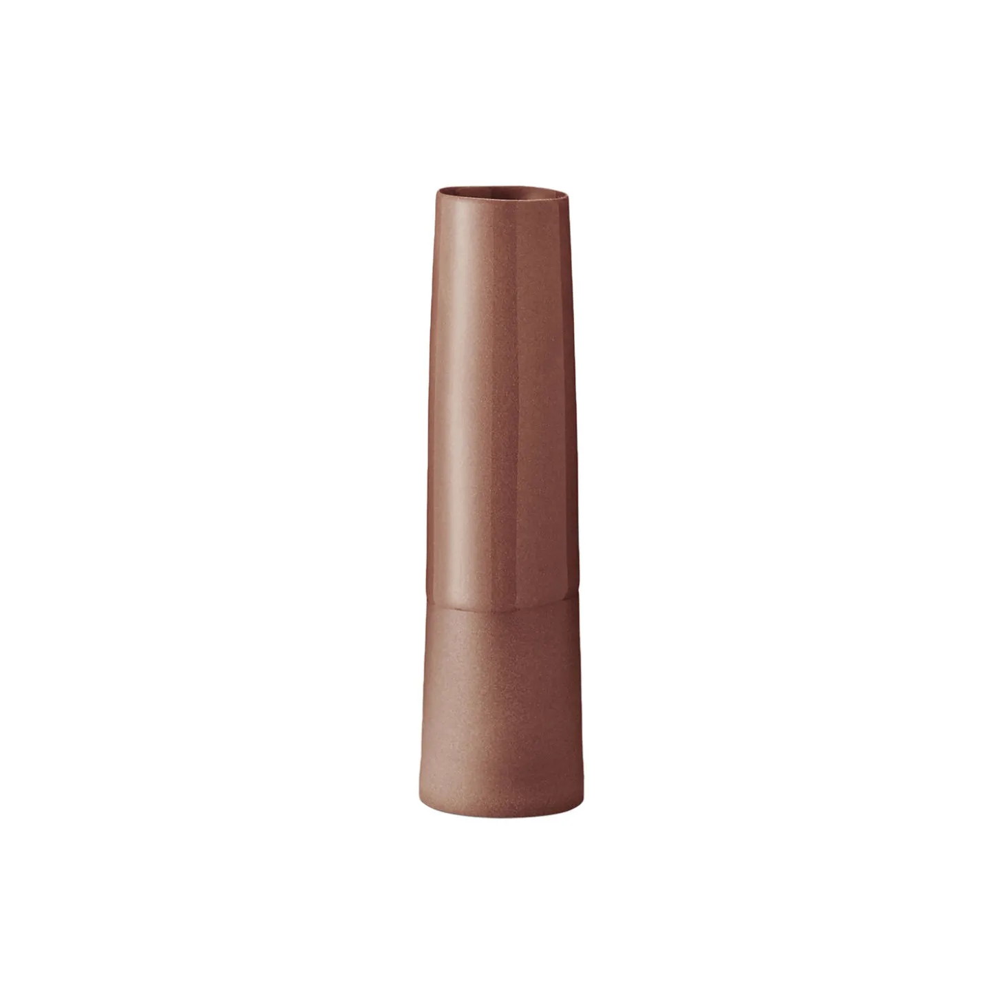 En uhøjtidelig og dekorativ lille vase, der gør sig rigtig godt med en enkelt blomst fra grøftekanten eller den ene blomst der stadig er frisk, når du smider en buket ud. Vaserne er forskellige – højde og hældning varierer. Støbt i indfarvet porcelæn og forarbejdet i hånden. Fremstillet hos Ditte Fischer i København.
