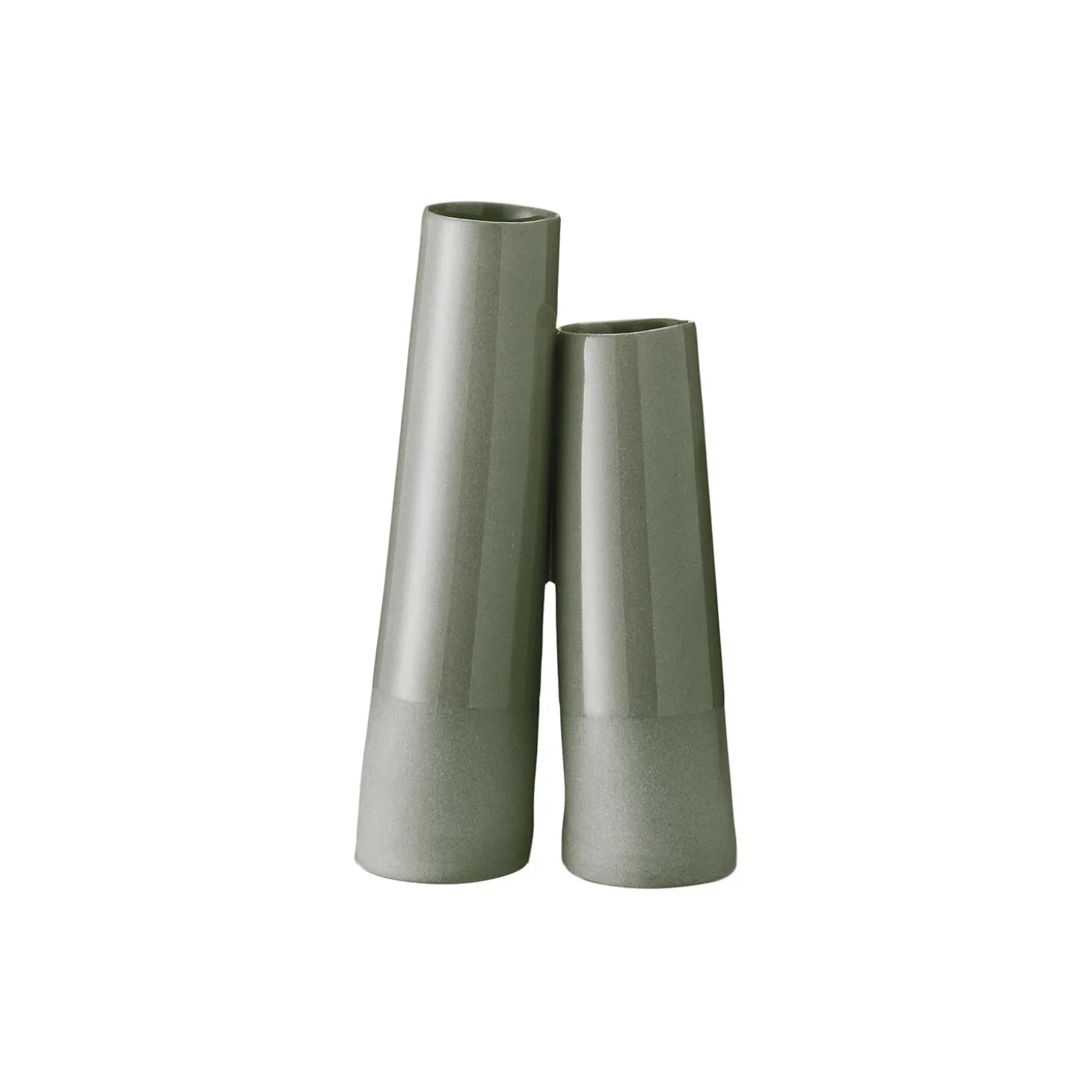 Rørvase med to skæve porcelænsrør i forskellig højde, der læner sig mod hinanden. Gør sig rigtig godt med en enkelt blomst fra grøftekanten eller den ene blomst der stadig er frisk, når du smider en buket ud. Vaserne er forskellige – højde og hældning varierer. Støbt i indfarvet porcelæn og forarbejdet i hånden. Fremstillet hos Ditte Fischer i København.