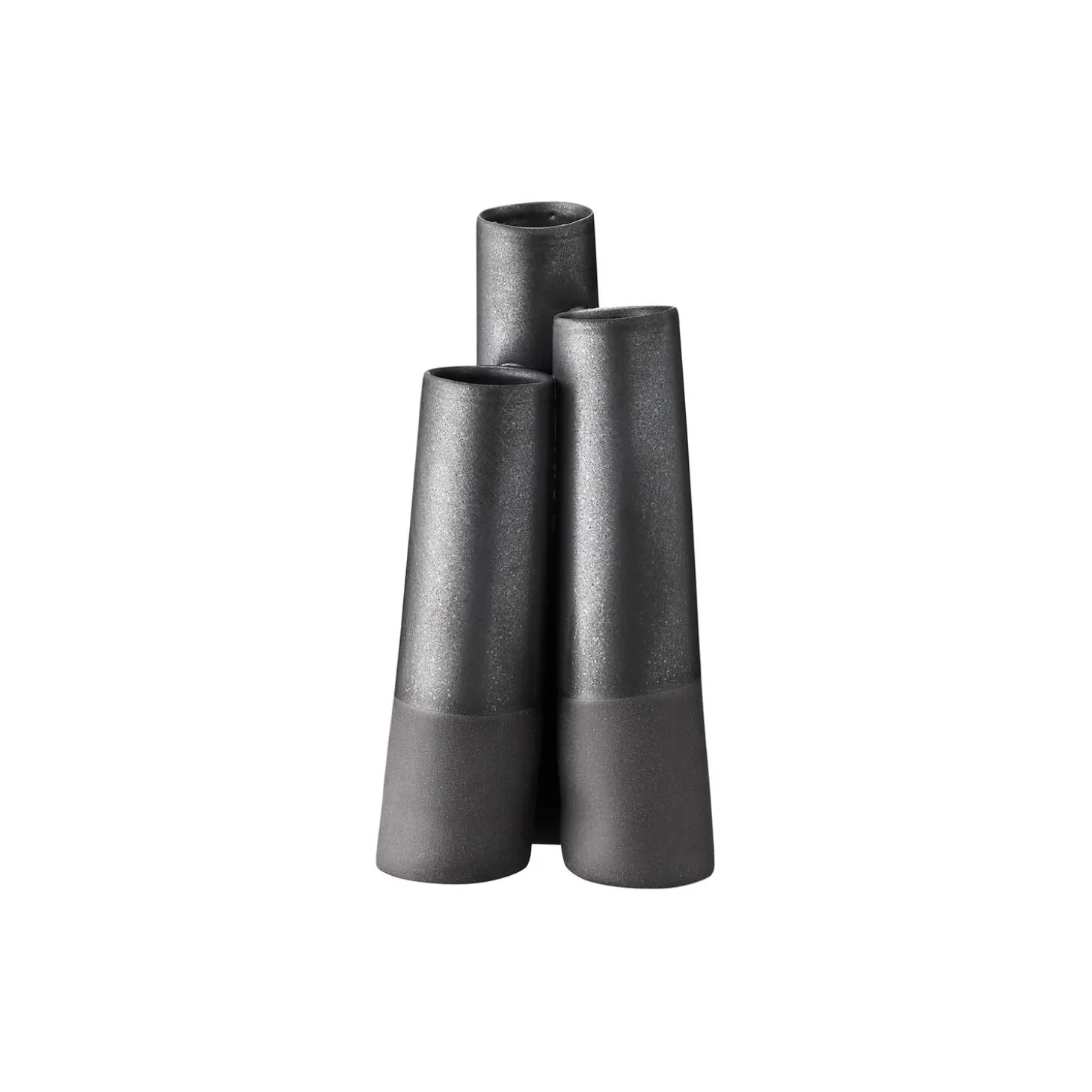 Rørvase støbt i indfarvet porcelæn og forarbejdet i hånden. En uhøjtidelig lille vase med tre skæve porcelænsrør i forskellig højde, der læner sig mod hinanden. Gør sig rigtig godt med en enkelt blomst. Vaserne er forskellige – højde og hældning varierer. Fremstillet hos Ditte Fischer i København.