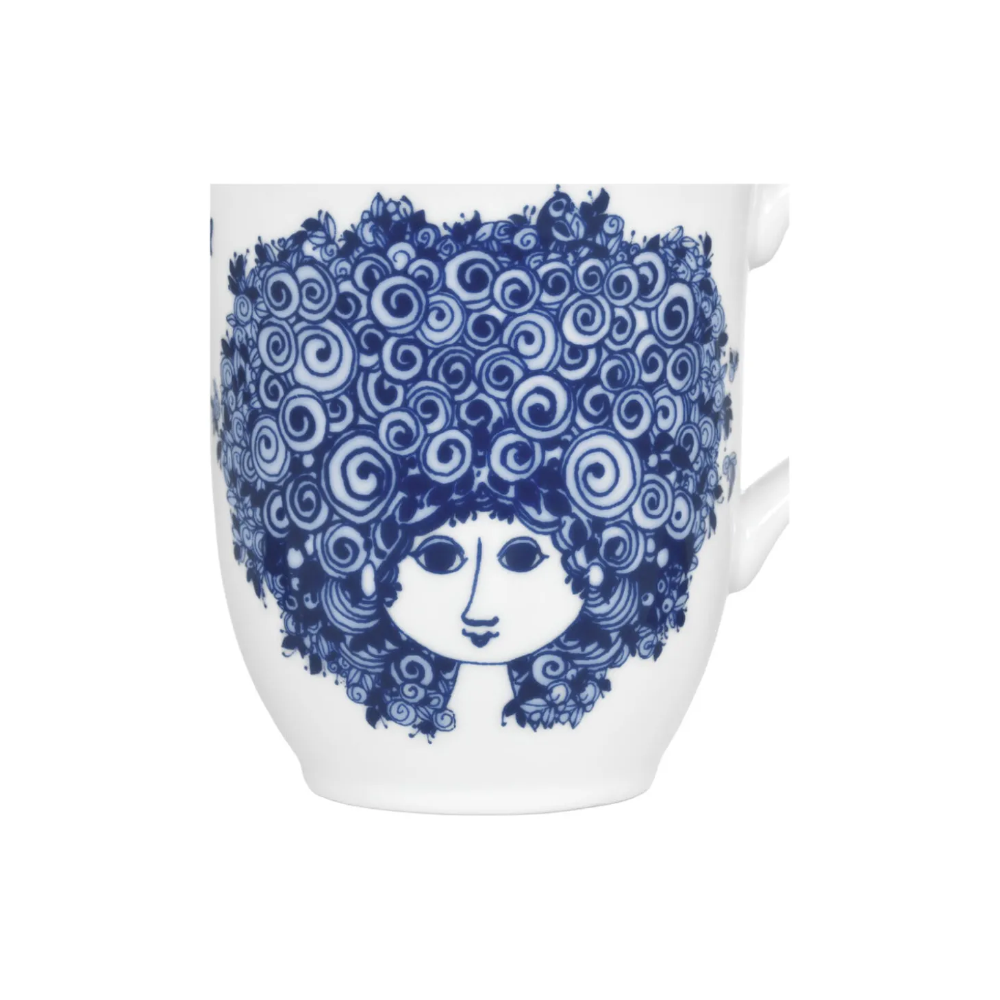 Rosalinde krus i hvid porcelæn med motiv fra Bjørn Wiinblad. Farve: blå. Mål: 10,2x dia.: 9,5 cm. Indeholder 35 cl. Design: Bjørn Wiinblad.