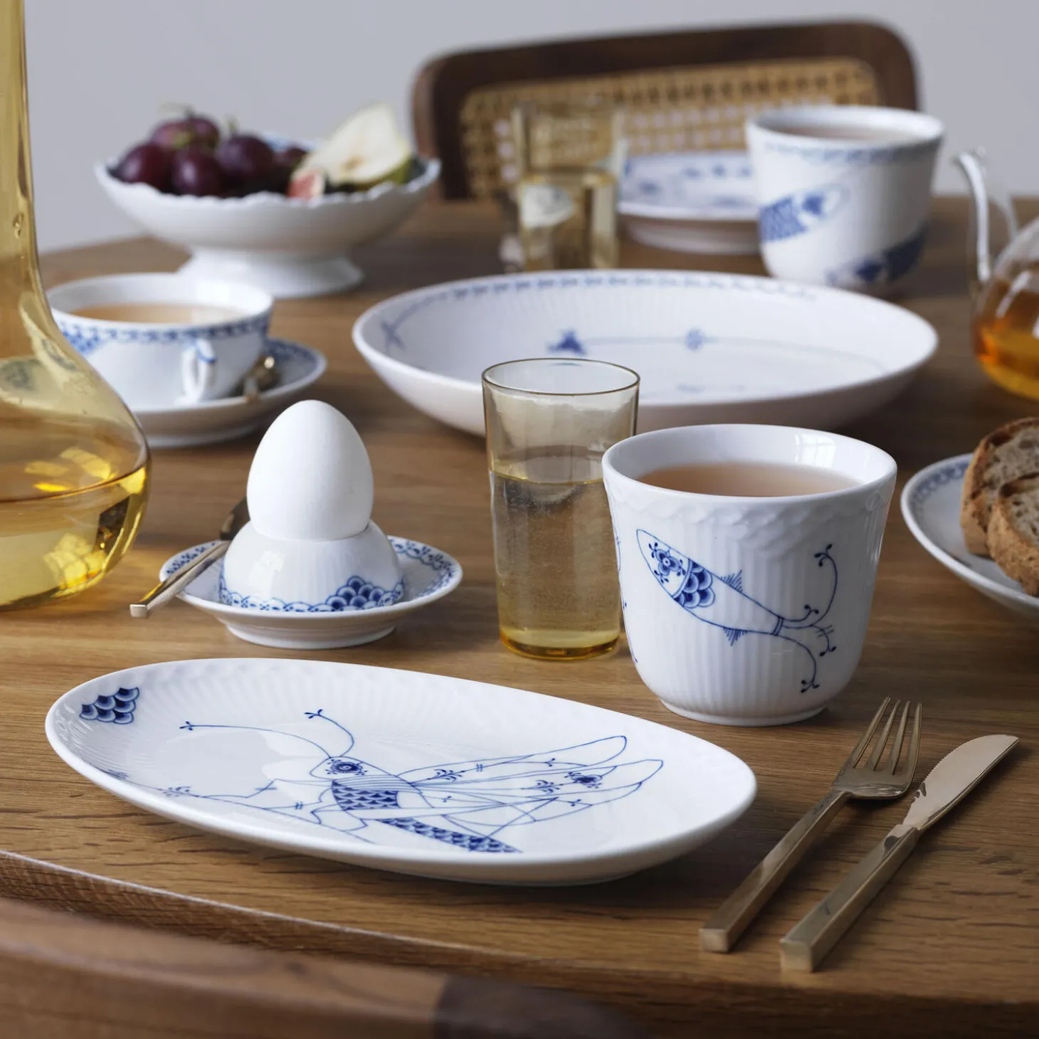 Royal Creatures termokrus med sild #2 i porcelæn fra Royal Copenhagen. To sild svømmer elegant over porcelænsoverfladen på dette Royal Creatures termokrus, der i øvrigt smukt komplimenterer det andet krus i kollektion. Krusets ydre og indre lag sørger for, at porcelænet ikke bliver varmt at røre ved.