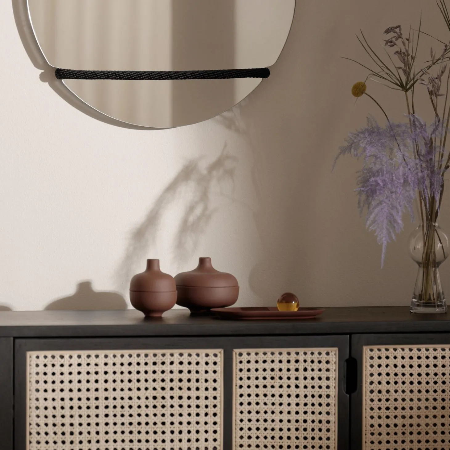 Carina Seth Andersson has once again managed to balance perfection and particularity in her new additions to Sand, her series of stoneware originally conceived for Nationalmuseum in Stockholm. The different objects are abstract yet familiar, alluding to age-old traditions refined to perfection. ‘There is a moment of surprise when you lift the lid,’ says Carina Seth Andersson. ‘The secrets of the chef unveiled! Together these earthenware objects will create a whole little landscape on the table.’ The trend to bring forward a multitude of different dishes for the table certainly does require the stage be set with a variety of vessels. Glazed on the inside, raw but softly polished on the exterior, the three black and clay-colored earthenware canisters are available in three different sizes.