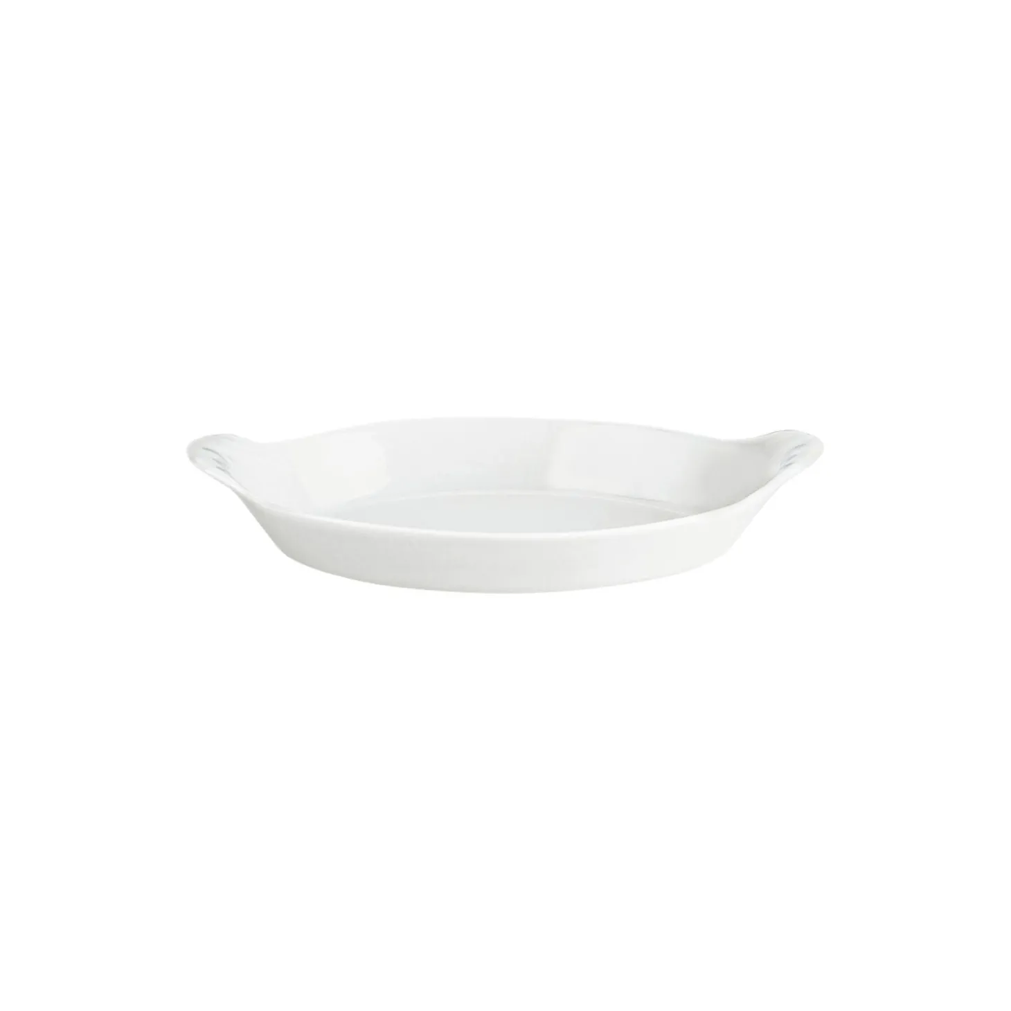 Klassisk oval serveringstallerken på 28 x 16 cm med håndtag, der også kaldes en ”æggepande”. Kan sættes direkte på komfuret og i ovnen.