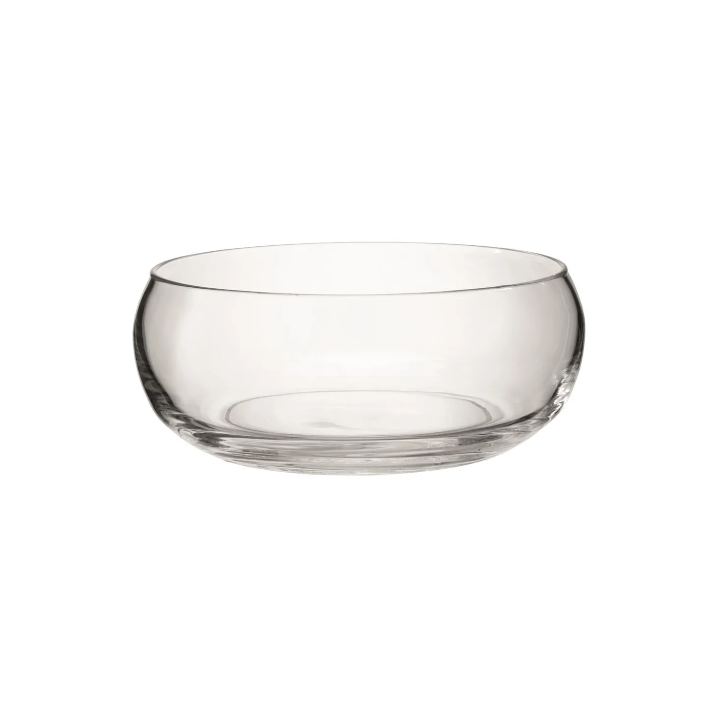 En bred mundblæst serveringsskål i glas med buede vægge, hvor kanten smeltes under en flamme for at opnå den bløde finish – skabt af dygtige glaspustere. Designet til salat eller frugt med lav profil og buet form.