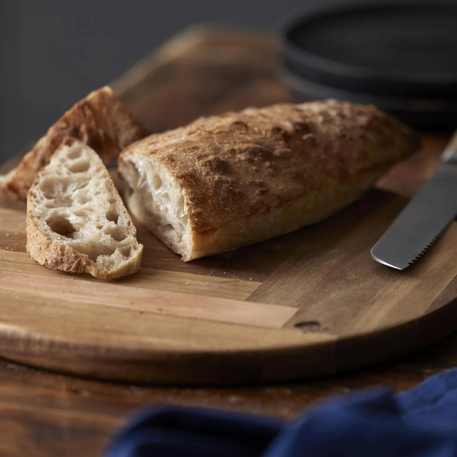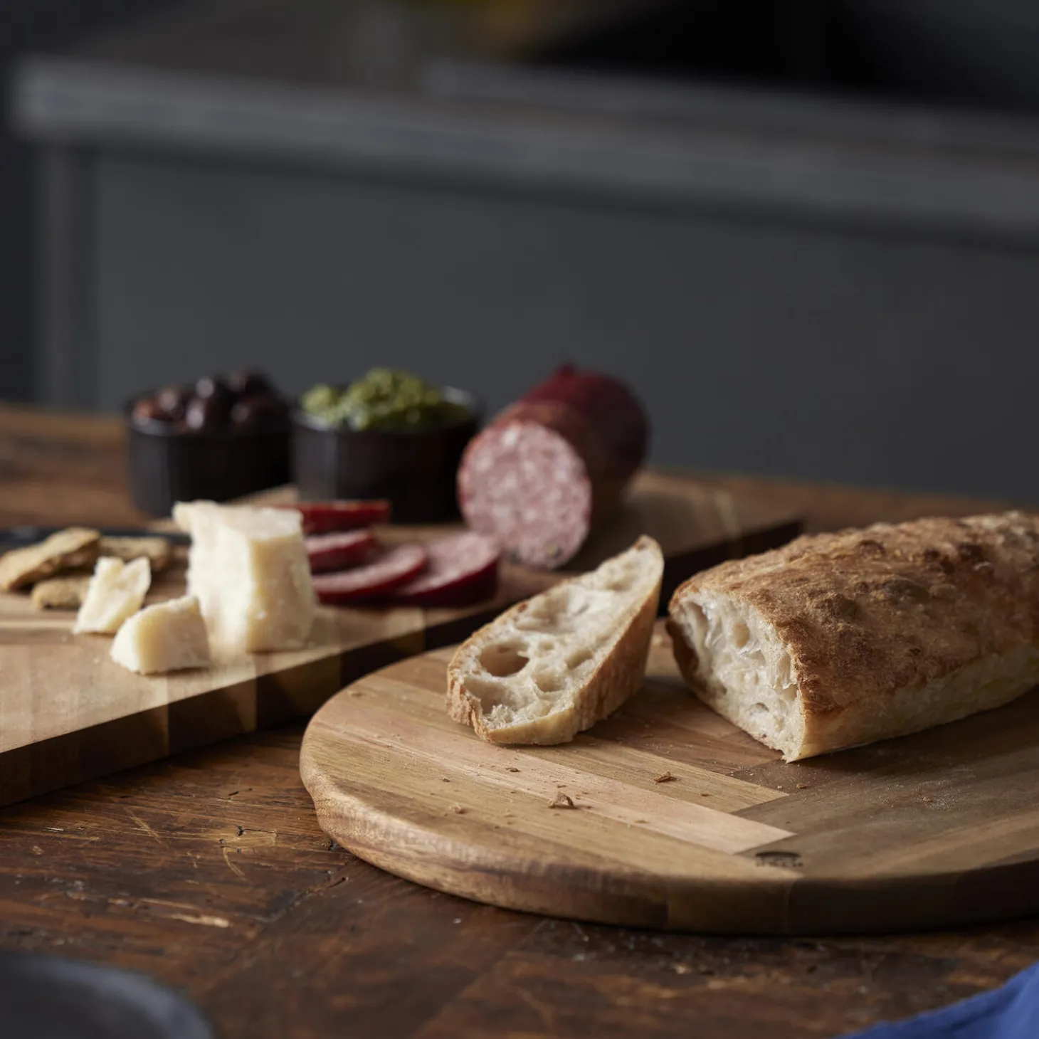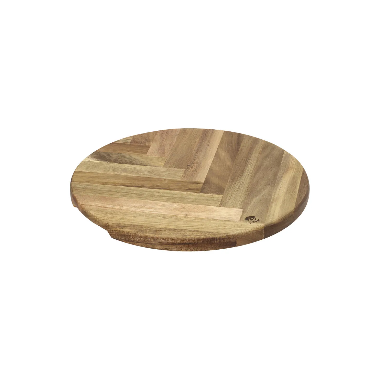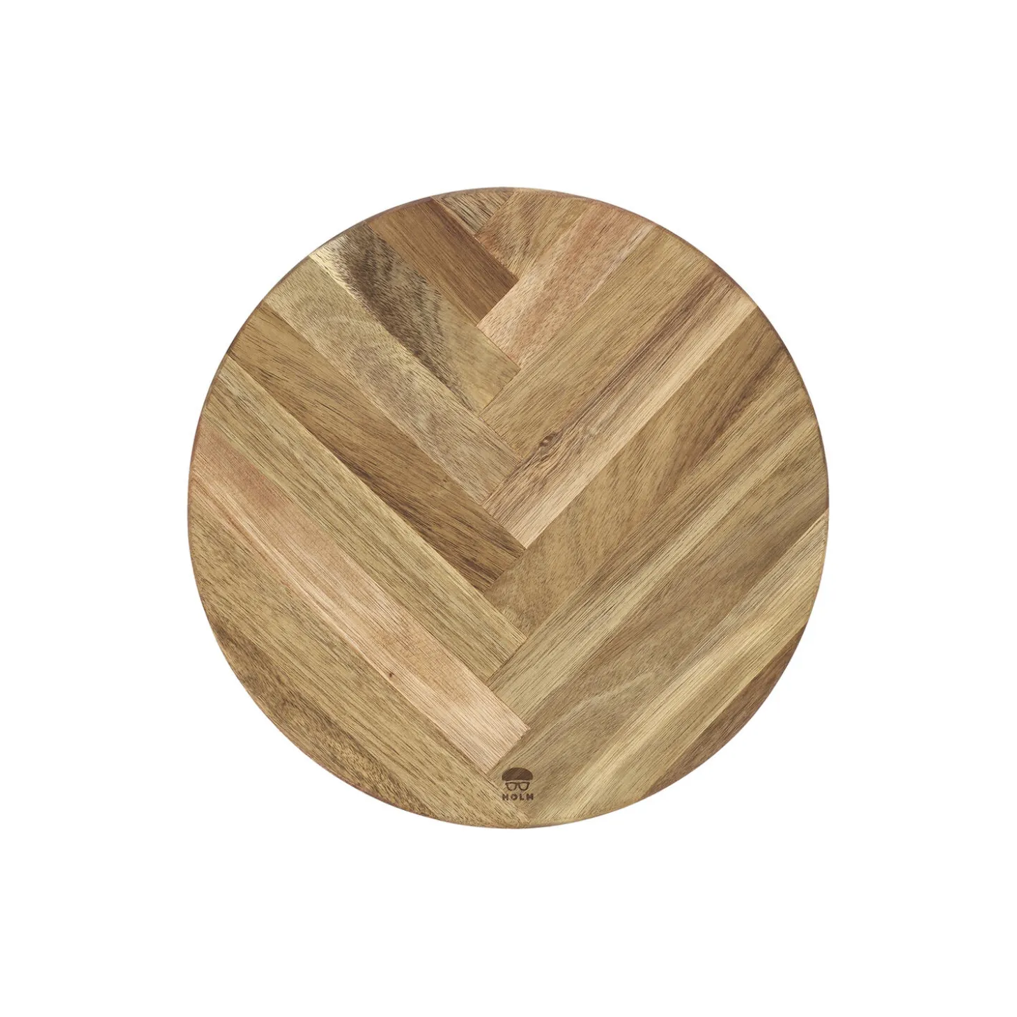 Rundt serveringsbræt af akacietræ i flot sildebensmønster. Brug det flotte serveringsbræt til servering af pizza, pålæg, bruschetta og andre antipasti-retter, ost eller andre retter, der skal præsenteres flot. Dia. 30,5 cm.Læg aldrig dit serveringsbræt i blød. Vaskes med varmt vand og mild sæbe. Brættet kan med fordel efterbehandles med madolie et par gange om året. Tåler ikke maskinopvask.Varen er produceret i FSC®-certificeret akacietræ (FSC-C166612).