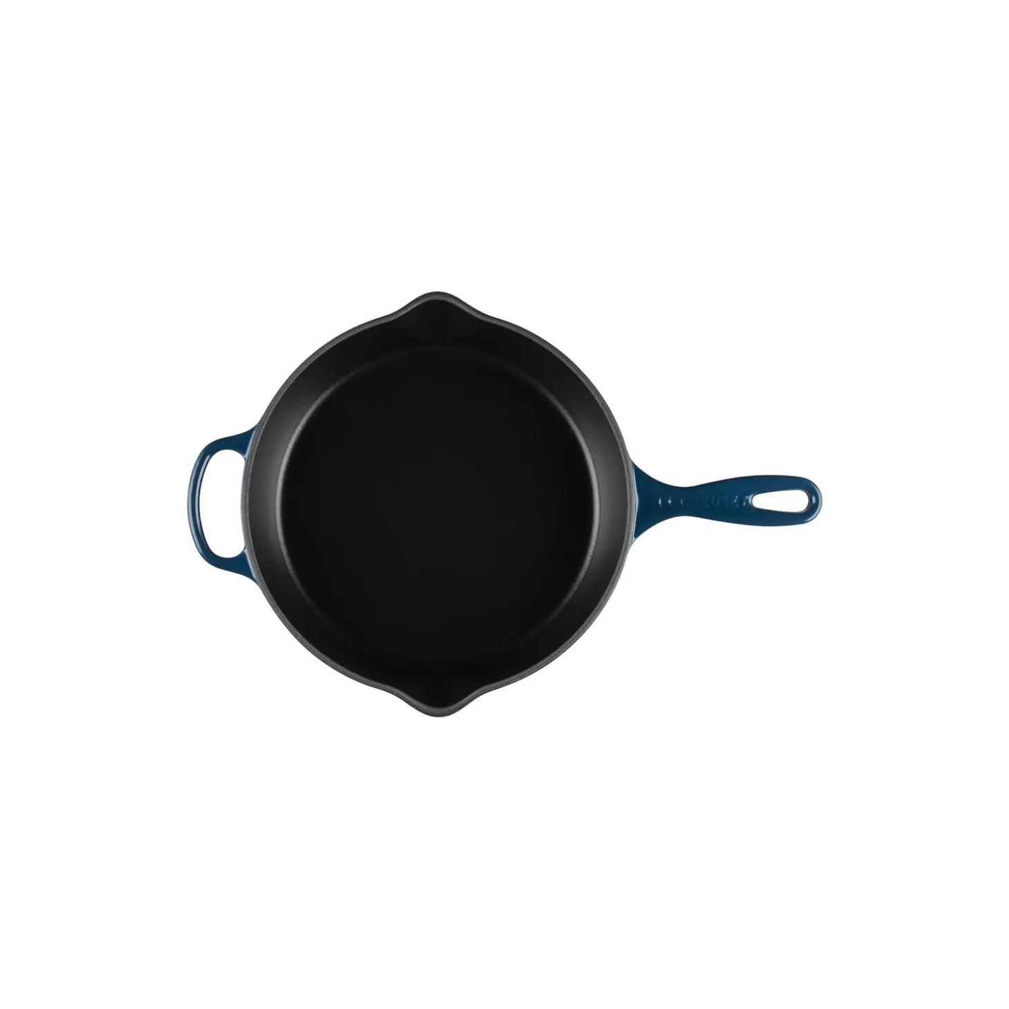 Panden er formstøbt af vores legendariske støbejern, så den kan bruges i ovnen såvel som på kogepladen. Den er i sandhed et essentielt redskab i køkkenet og har et greb, som gør den nem at flytte rundt på. Den har desuden to hældetude for drypfri servering. Klar til at servere? Kan sættes direkte på bordet.