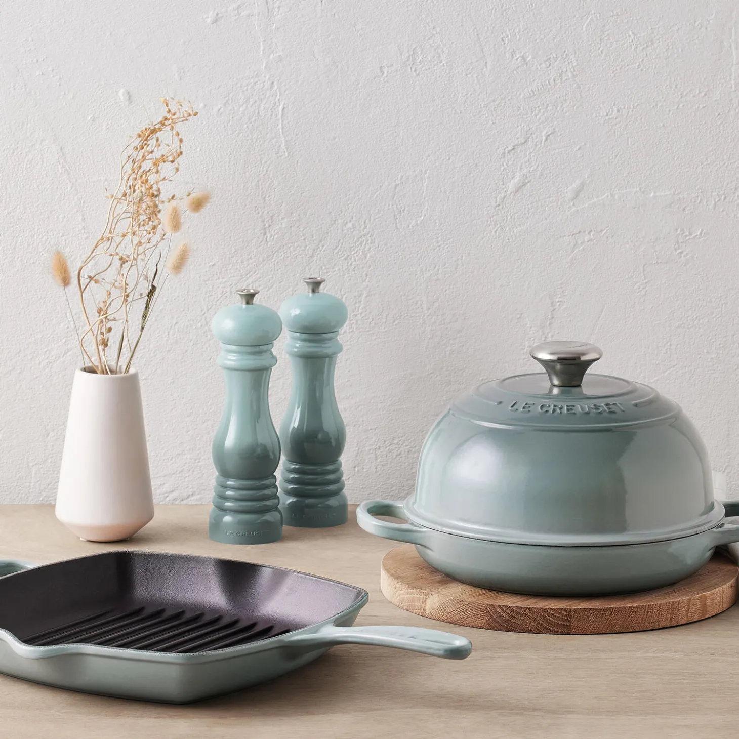 Vores kendte grillpande i støbejern forsegler hurtigt overfladen på din mad og holder på den gode saft og smag. Den er perfekt til lækker og sund madlavning – fedtet ledes simpelthen væk og samles mellem rillerne. Dette alsidige produkt vil også gøre det nemt for dig at tilberede hurtige måltider med kød, fisk og grøntsager. Egnet til følgende varmekilder: ovnens grill, ovn, elektrisk, keramisk kogeplade, gas og induktion.