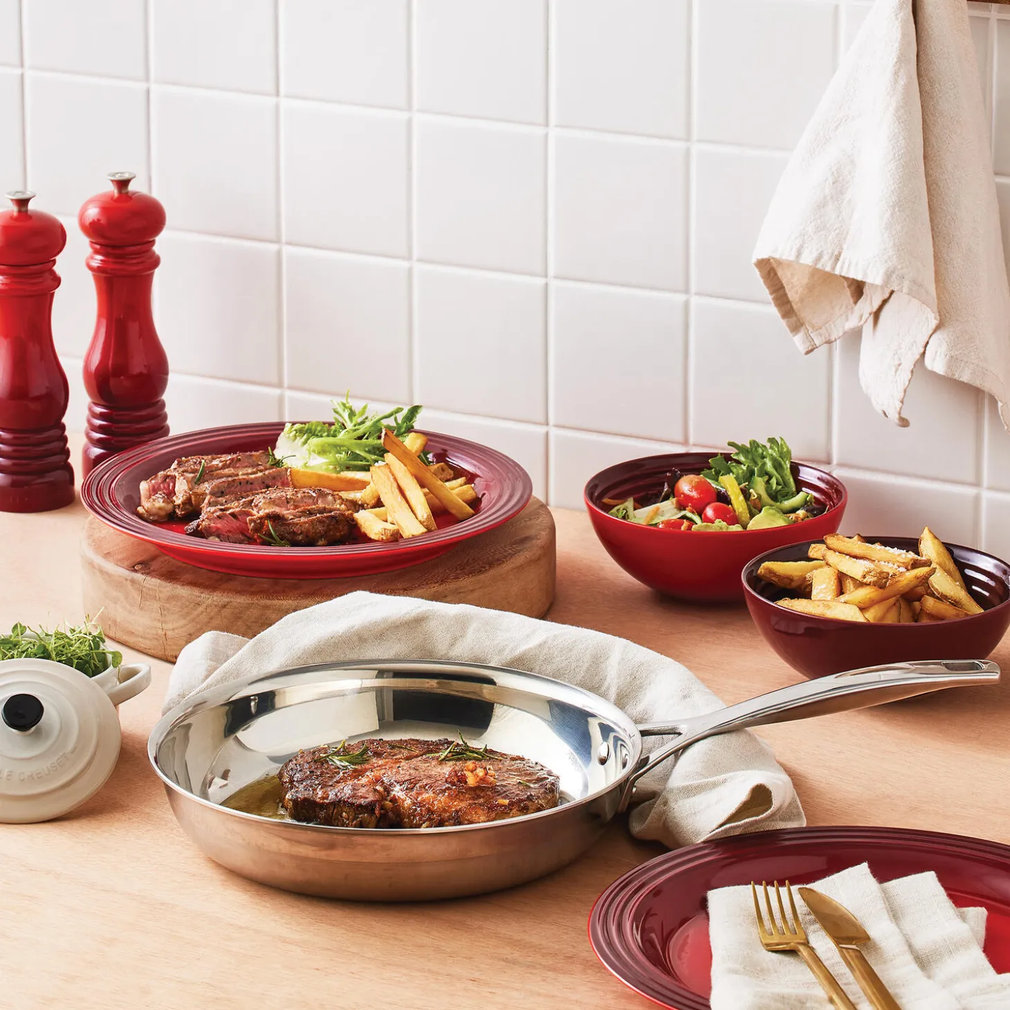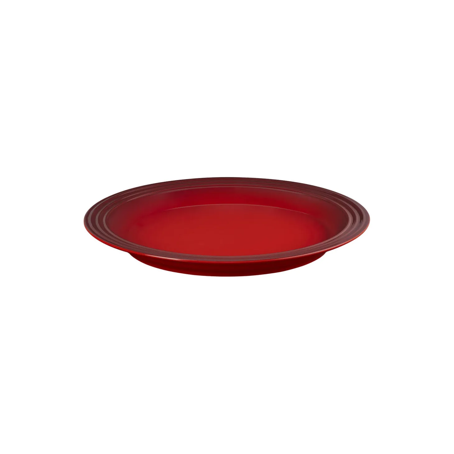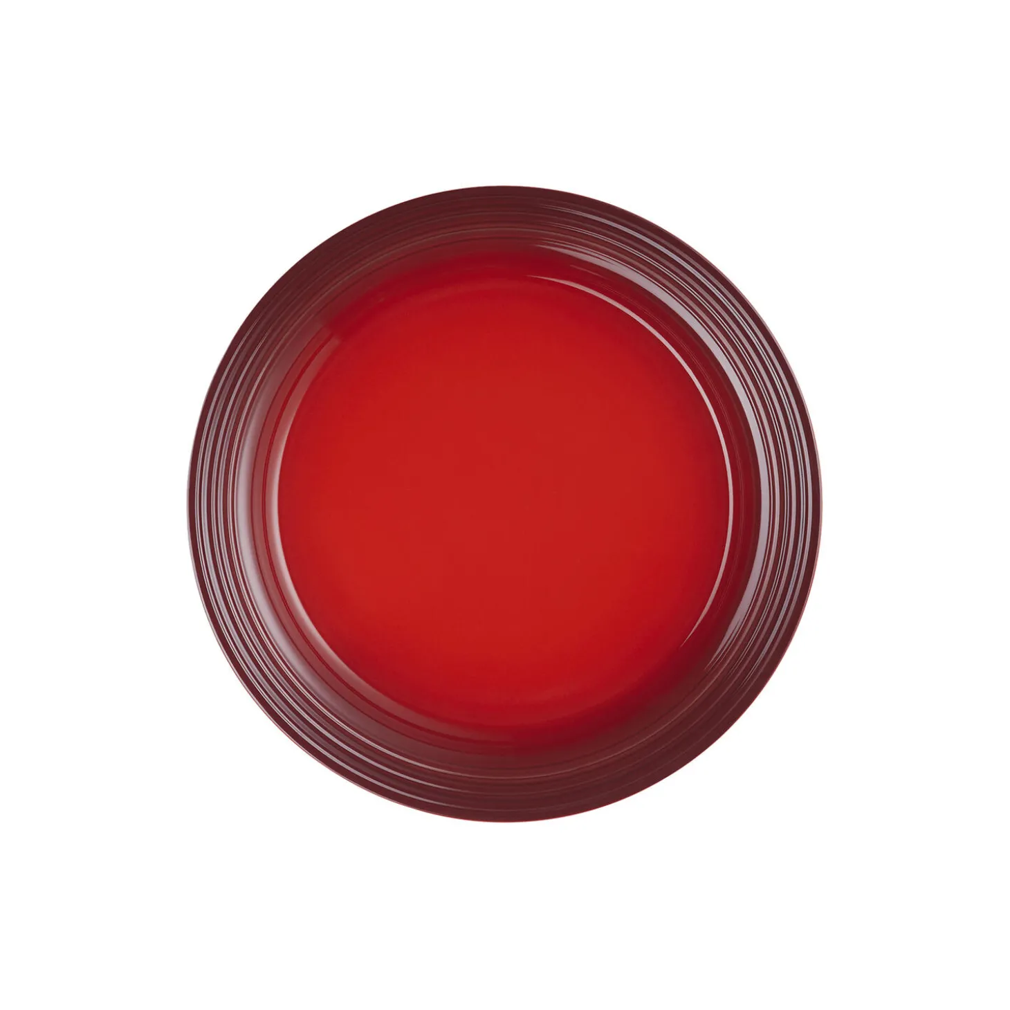 Pynt op på dit bord med denne klassiske middagstallerken i stentøj. Den er designet med en nedsænket bund, hvor eventuel væske samles. Derved undgår du at spilde og får mere frihed til at servere alle slags lækre retter. Kanten er designet med Le Creusets karakteristiske tre ringe – fans af Le Creuset ved besked.