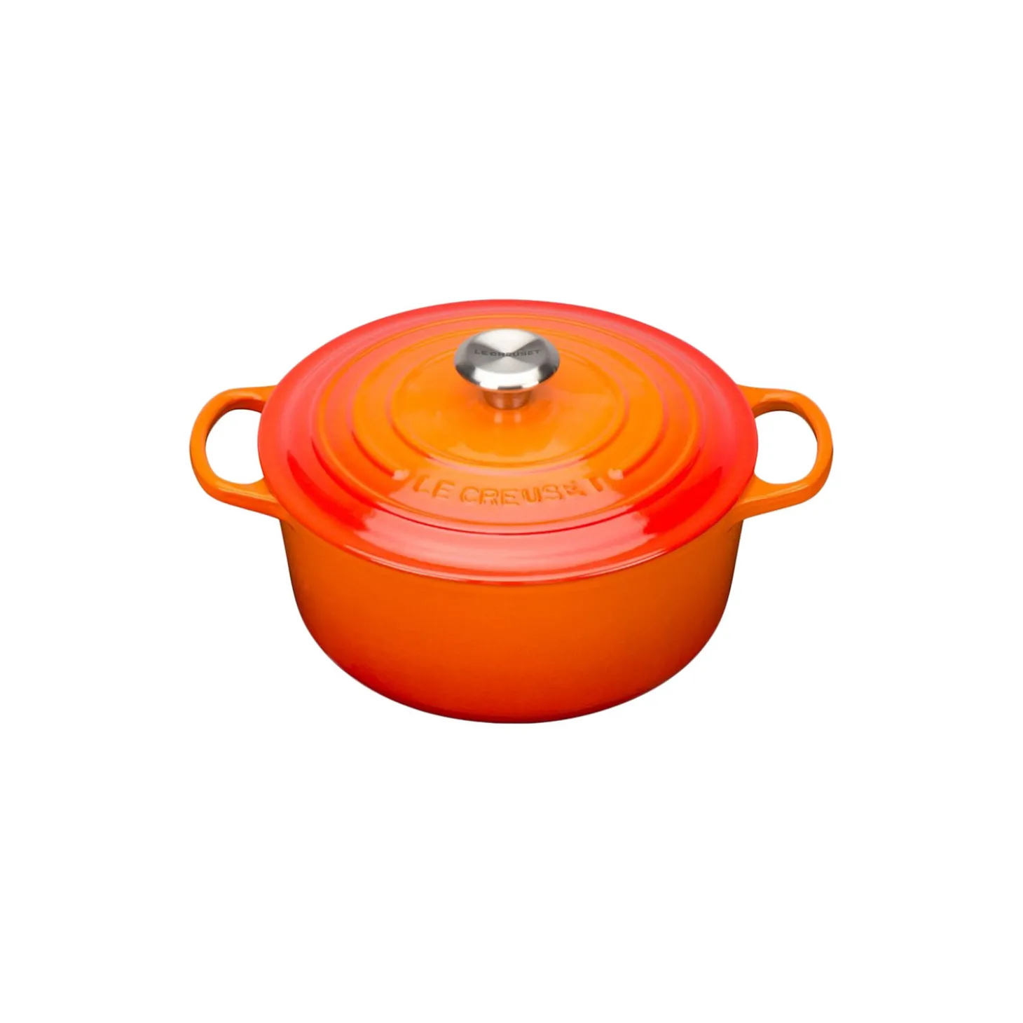 Le Creuset-gryden er en kulinarisk klassiker, som har været elsket af kokke i hele verden i næsten et århundrede. Denne klassiker er perfekt til stuvninger, stege, supper, gryderetter og bagning. Du behøver kun dette ene, ikoniske produkt til alle dine forskellige og mindeværdige måltider, der får tænderne til at løbe i vand. Låg med rustfri stål- eller fenolknop tåler opvaskemaskine. Låg med guld-, iriserende-, kobber- og sort nikkelknop skål håndvaskes for at bevare deres finish.