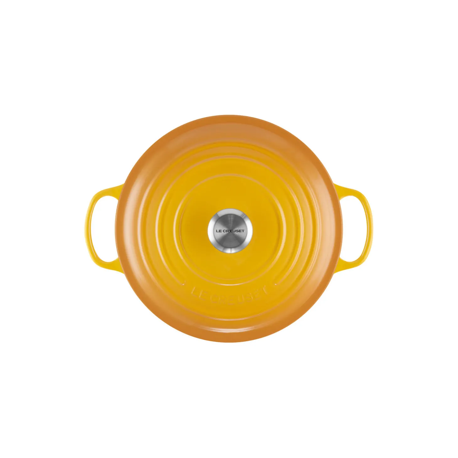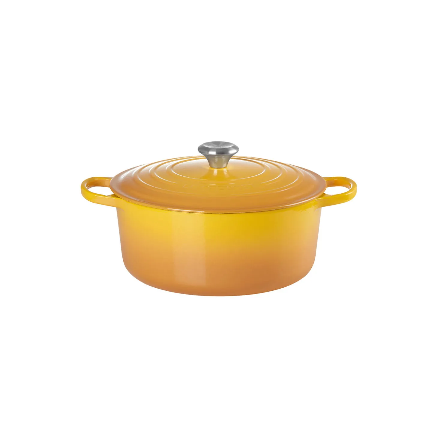 Le Creuset-gryden er en kulinarisk klassiker, som har været elsket af kokke i hele verden i næsten et århundrede. Denne klassiker er perfekt til stuvninger, stege, supper, gryderetter og bagning. Du behøver kun dette ene, ikoniske produkt til alle dine forskellige og mindeværdige måltider, der får tænderne til at løbe i vand. Låg med rustfri stål- eller fenolknop tåler opvaskemaskine. Låg med guld-, iriserende-, kobber- og sort nikkelknop skål håndvaskes for at bevare deres finish.