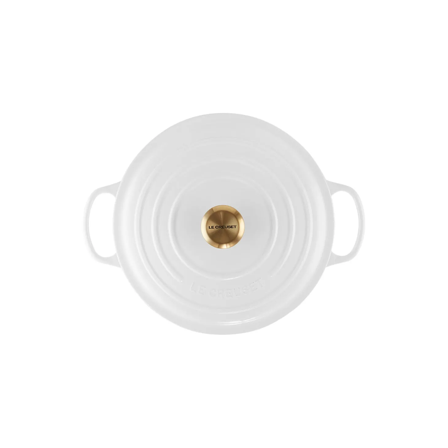 Le Creuset-gryden er en kulinarisk klassiker, som har været elsket af kokke i hele verden i næsten et århundrede. Denne klassiker er perfekt til stuvninger, stege, supper, gryderetter og bagning. Du behøver kun dette ene, ikoniske produkt til alle dine forskellige og mindeværdige måltider, der får tænderne til at løbe i vand. Låg med rustfri stål- eller fenolknop tåler opvaskemaskine. Låg med guld-, iriserende-, kobber- og sort nikkelknop skål håndvaskes for at bevare deres finish.